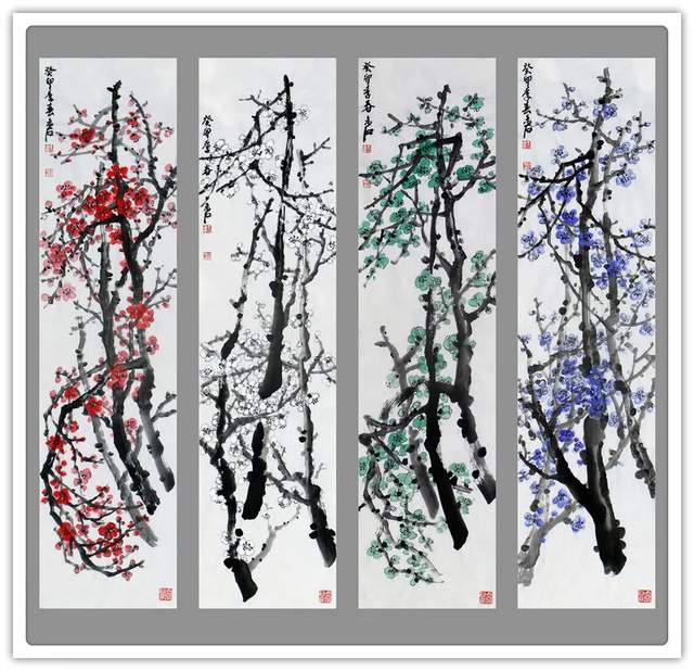 寒霜傲雪花争取艳 四条幅 4x136mmx34mm 2023年