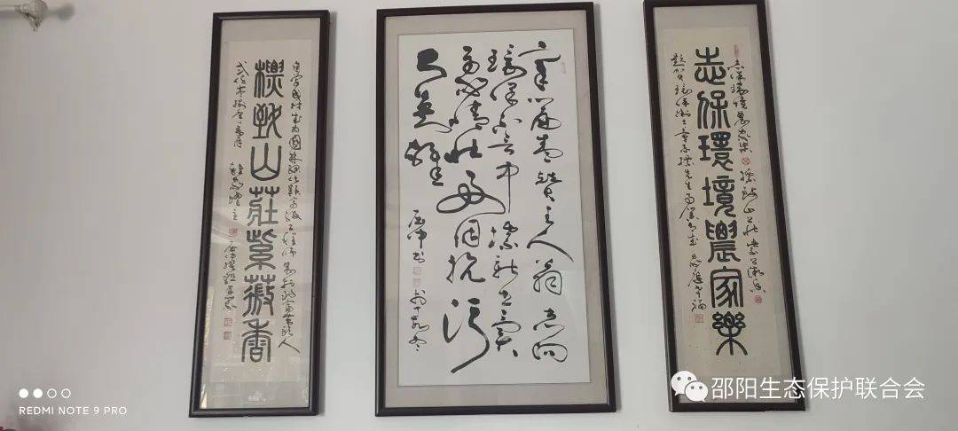 章志标紫薇山庄一楼客厅正面墙上挂着中国书法家协会原副主席屈伸的嵌名联和嵌名诗。对联是"志保环境农家乐,标致山庄紫薇香。"草书嵌名诗是——