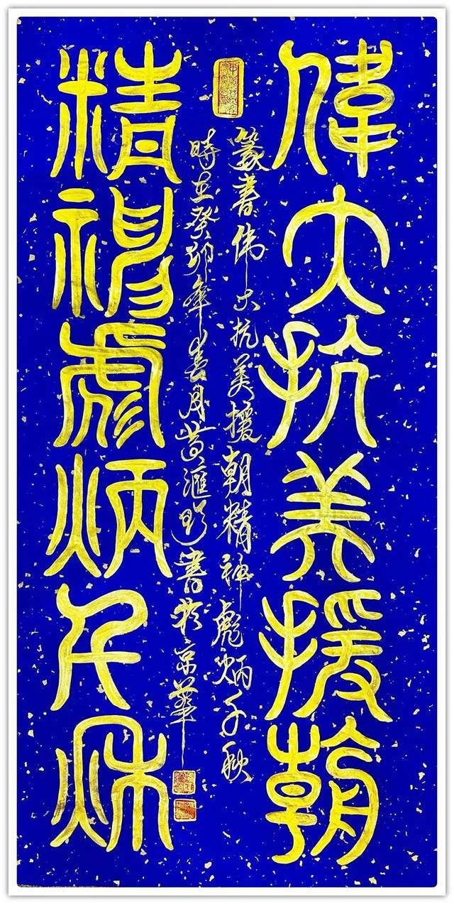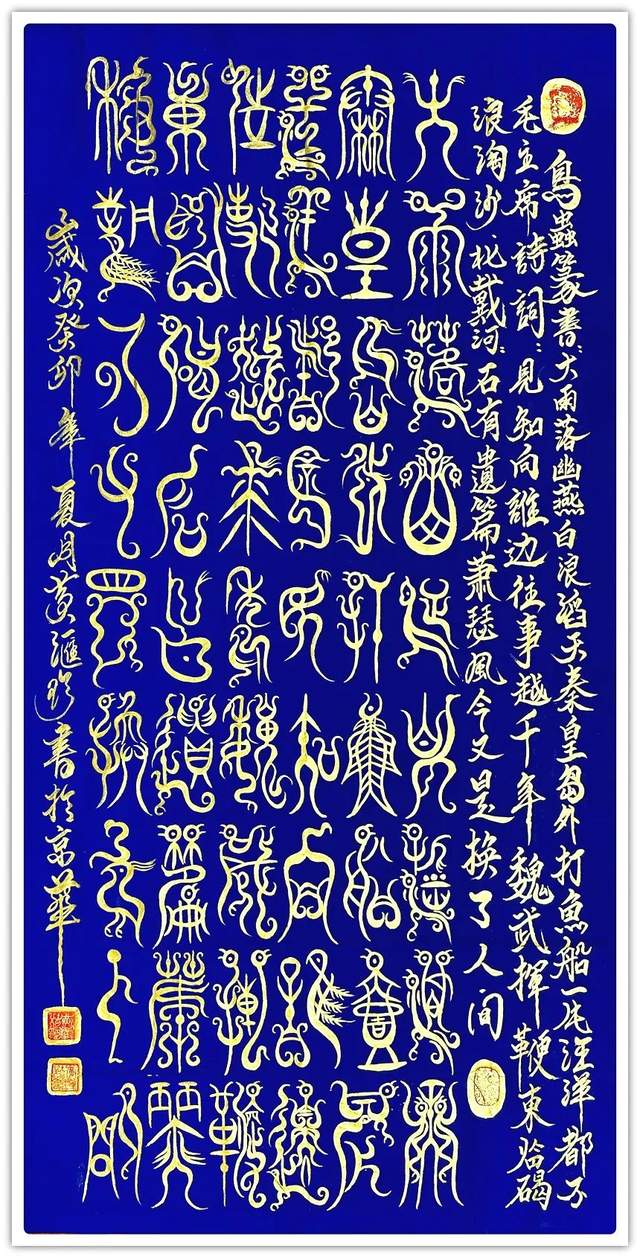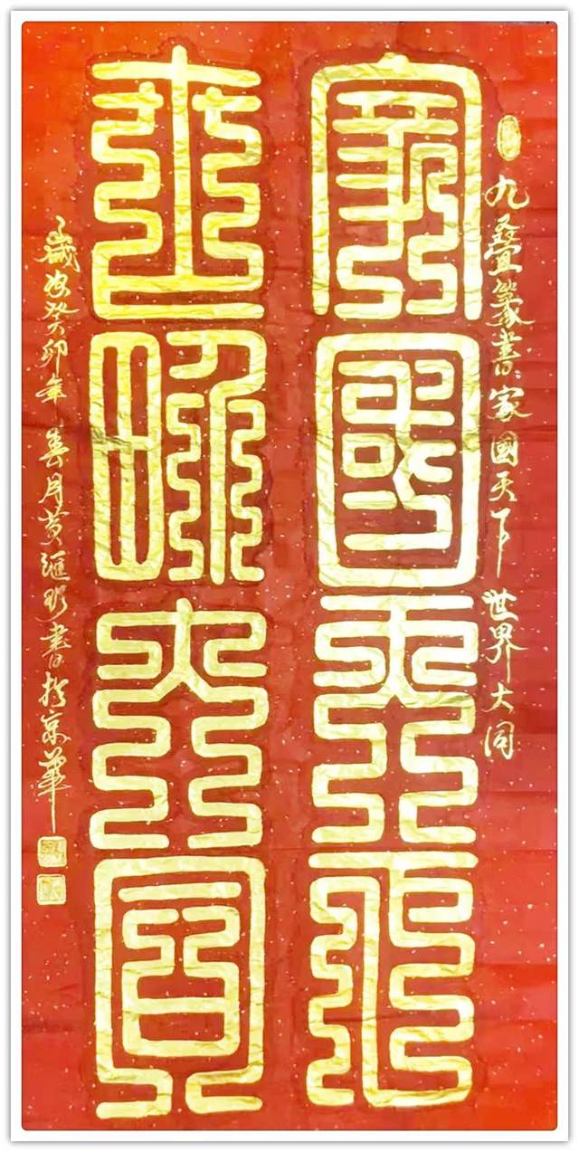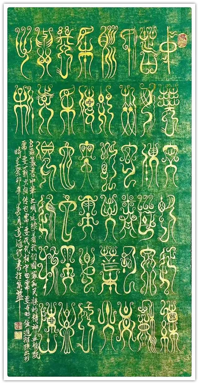 所谓鸟虫篆,是指在文字构型中,改造原来的笔画,使笔画线条盘旋弯曲,象虫象鸟的形状或者加以鸟形、虫形等纹饰的书法字体,是古文字书法中的一朵奇葩。汉字书写为代表形式的书法艺术,是中国优秀传统文化的重要组成部分。在精彩纷呈的书法艺术殿堂中,鸟虫篆是中国书法的源头之一,是中华民族优秀的文化遗产,是中国书法中一种历史悠久,资料丰富,美学价值极高的文字艺术。