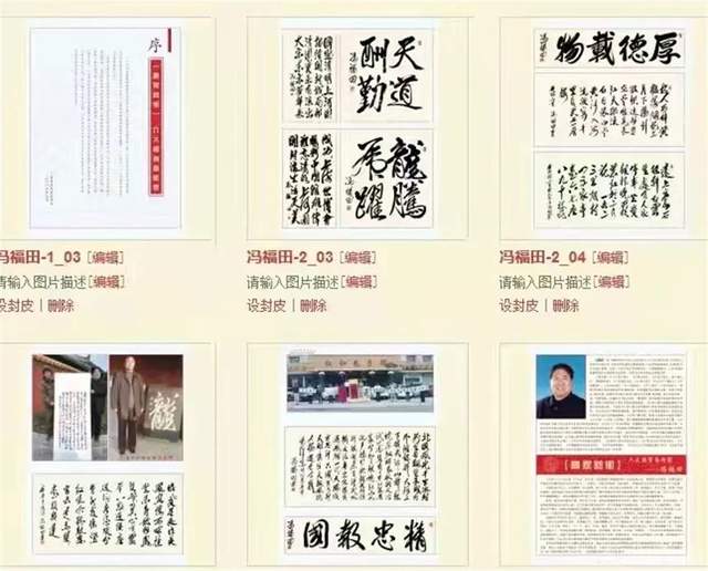 冯福田:在《人民日报》、《河南日报》 、《开封日报》 、新华通讯社、《解放军报》、《人民政协报》、《光明日报》、中央人民广播电台、《羊城晚报》、《北京日报》、《北京晚报》、《文汇报》、《南方周末》、美国《侨报》等发表新闻作品5678幅,发表摄影作品900多幅,发表书法作品100多幅,发表论文并收入新华出版社论文选集10多篇。多次荣获全国、省、市新闻奖。主编的《开封日报》“ 潘杨湖”专栏荣获河南省新闻名专栏奖。摄影《胡锦涛在兰考》荣获报纸新闻奖。《开封兴 建中国翰园碑林》荣获河南省新闻奖。《省委书记李长春为瓜农解难》荣获中国地市报现场新闻奖。书法作品在中国国家博物馆、深圳博物馆、开封博物馆展出。发表作品向国内外宣传中国翰园碑林,让世界了解开封,收到世界著名书画家书画作品2万幅,已全部上交国家,使中国翰园碑林碑刻数量成为世界之最。