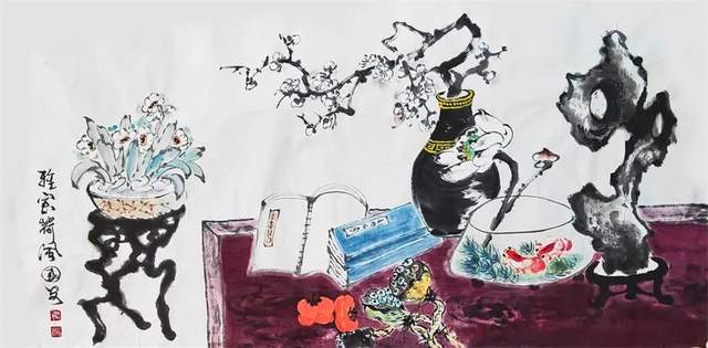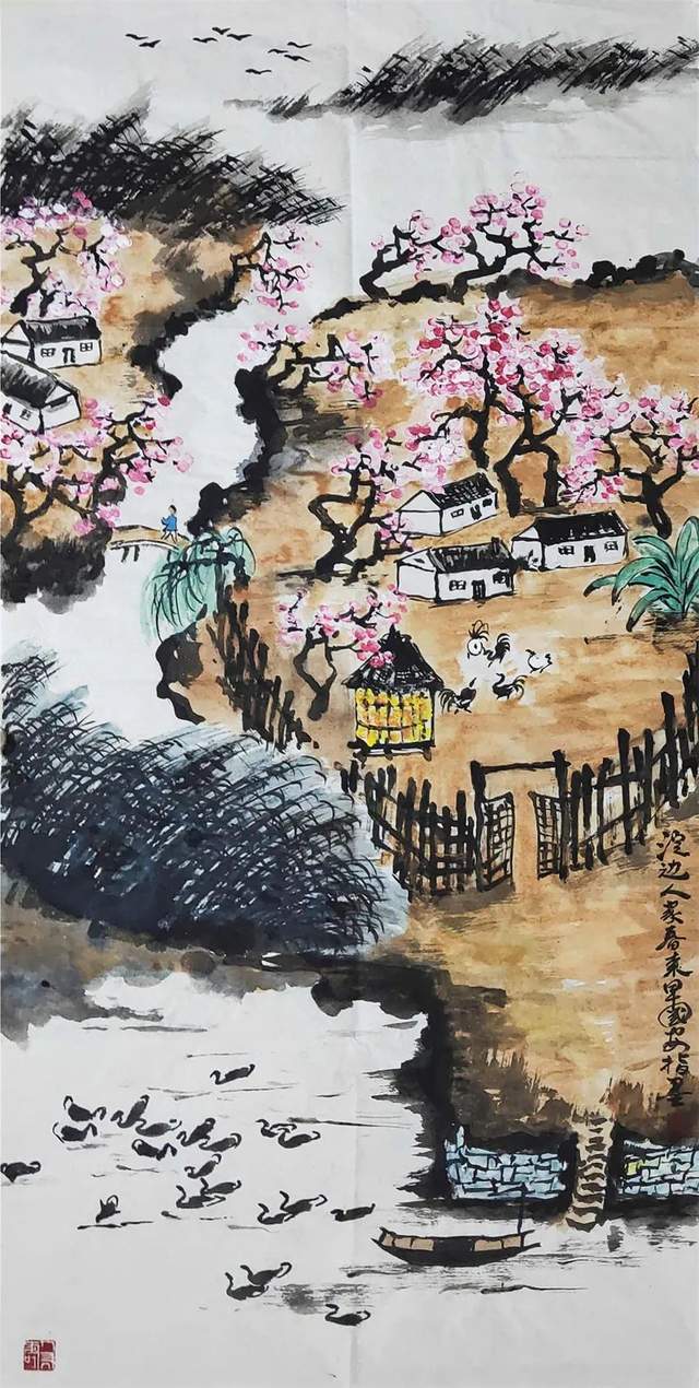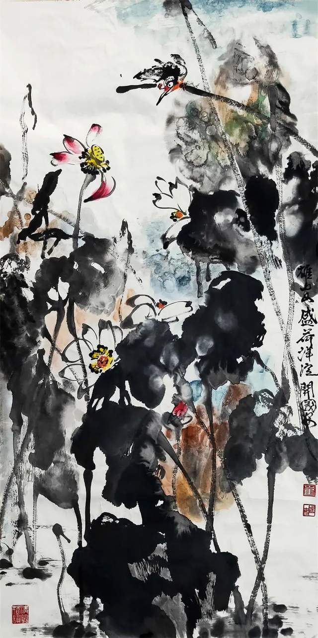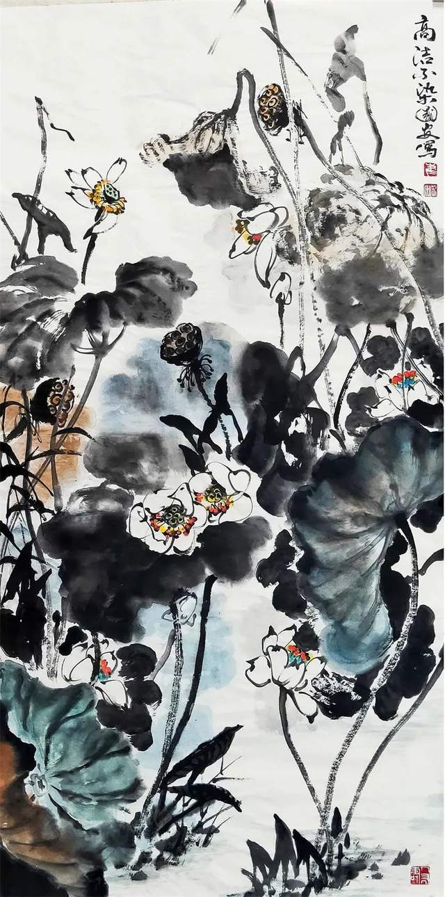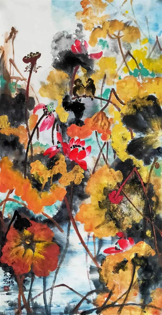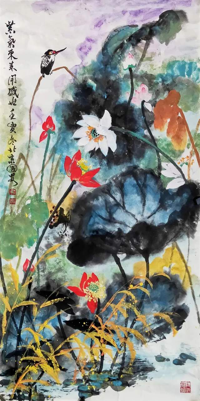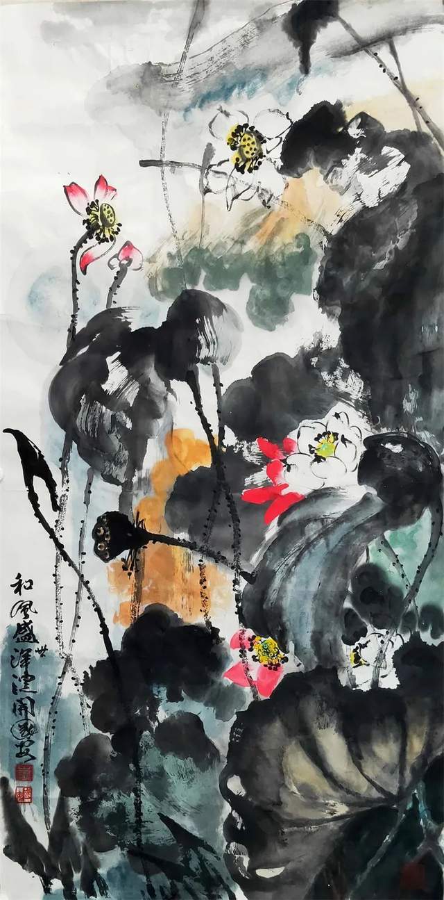 2017年9月应石家庄美术馆之邀展出“淀上长歌赋,再现雄安情”大型国画展,并出版大八开《淀上长歌赋》画集。一带一路共双赢,荷花,由美术馆永久馆藏。