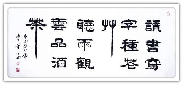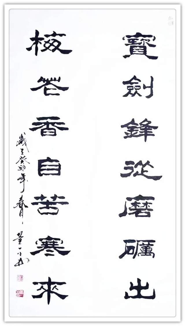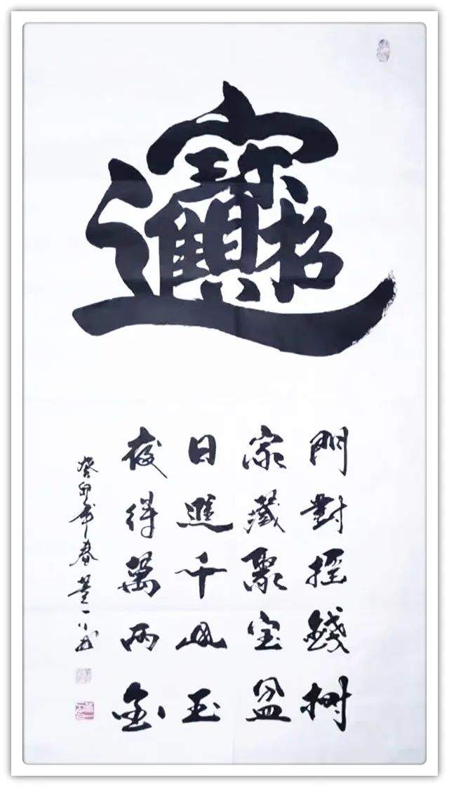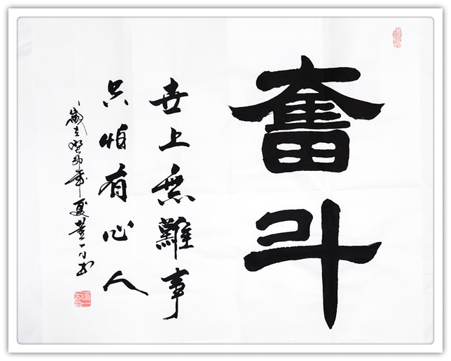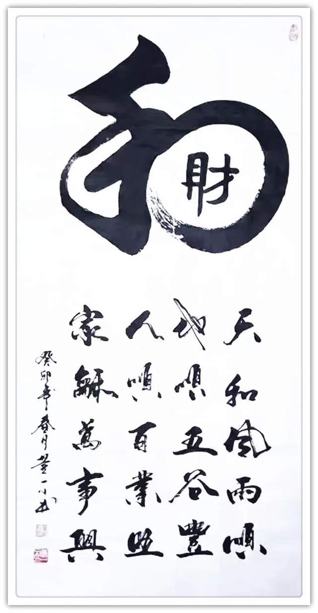 董新民先生书以载道,习成书法诸书皆优,一幅龙跳天门,一件虎卧凤阙,成为执笔写透翰墨精神的代表作。篆书正大气象,传承秦风铁篆的叩击山河。他的楷书蓄颜筋柳骨,参意欧楷奇笔,写得楷精法详,无可挑剔。隶书取法曹全碑,觉悟张迁碑,写得平曲有别,高低有趣。行书写下《家和万事兴》天质自然,不求为佳反为最佳,下笔可到乌丝栏。草书左蹙右盼如惊电,状如楚汉相攻战。形意书法《佛》《竹》《马到成功》以正结体,以奇用笔,以笔墨弘道而惠济天下!高能书家,真实不虚。
