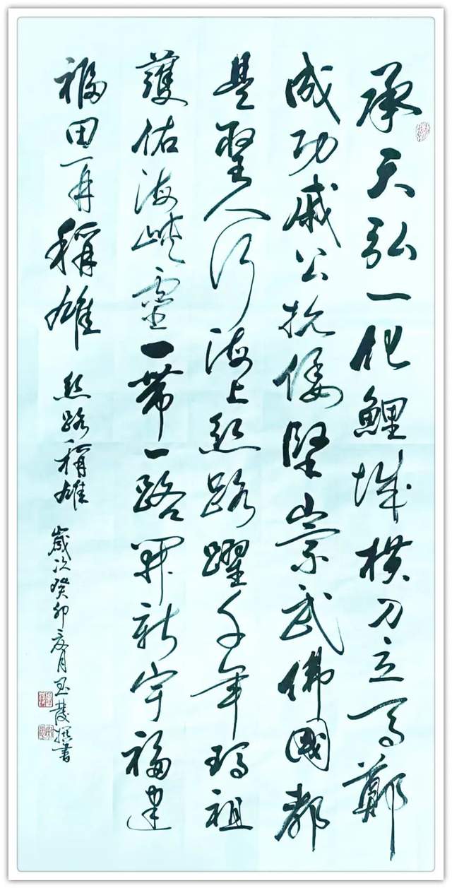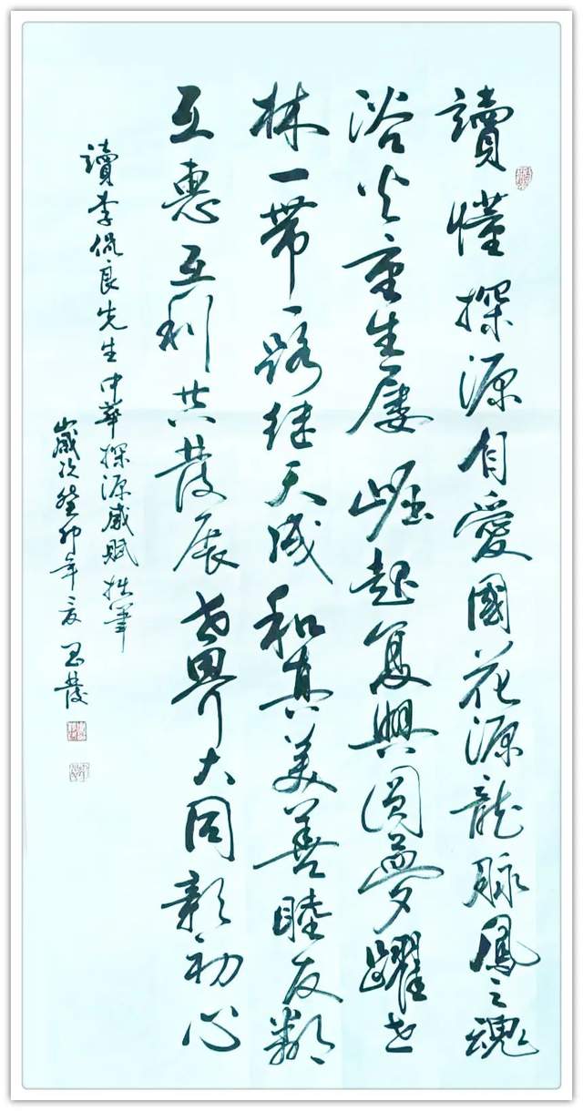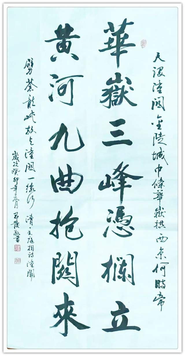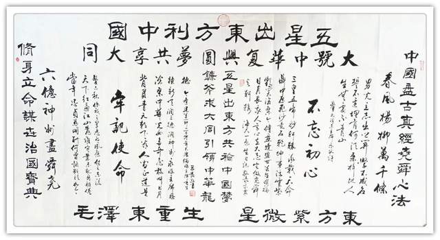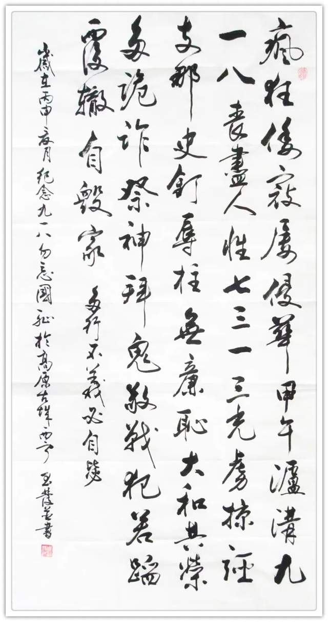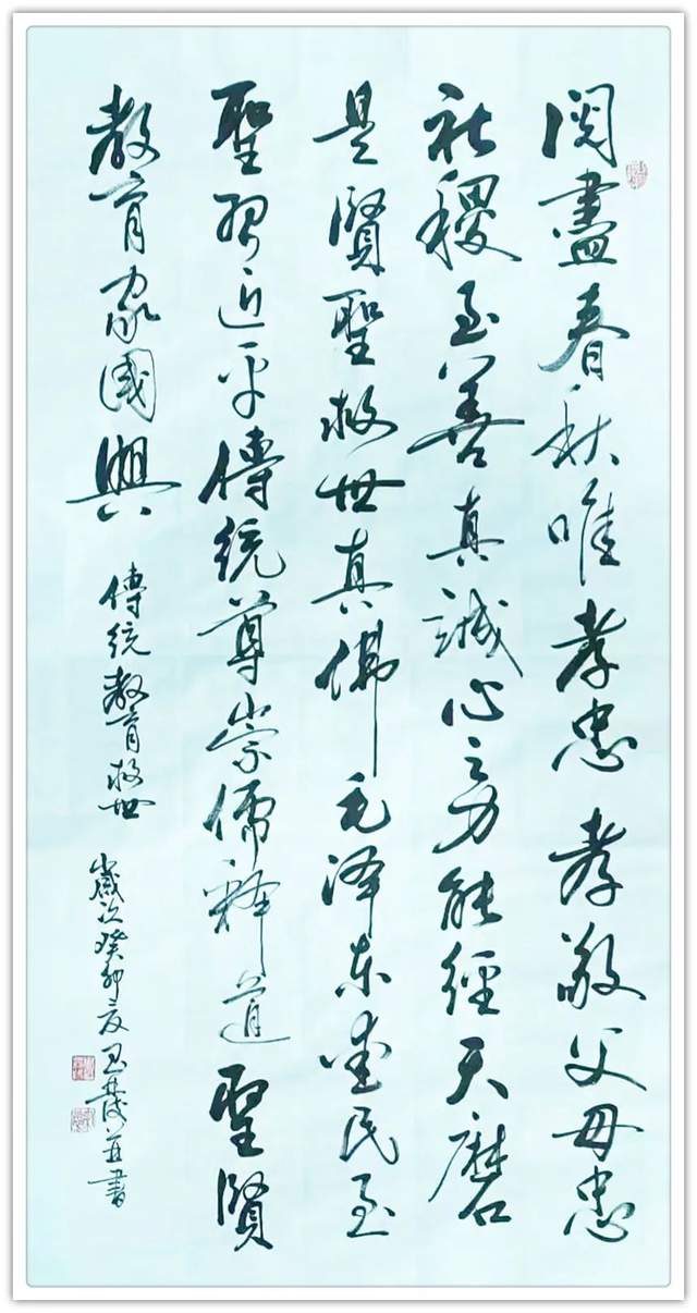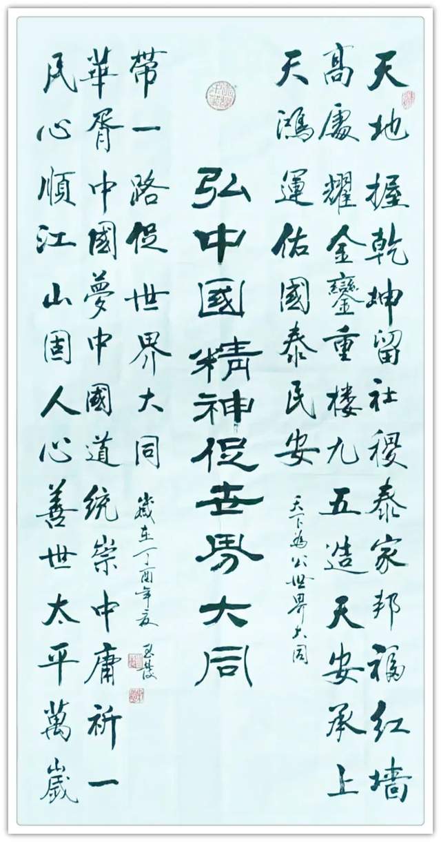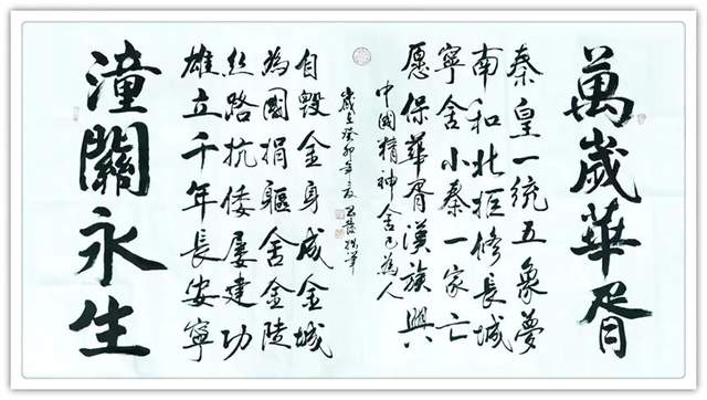 “诗文当为时而赋,书画更应世而作”。仅管有起点,正在努力中,决心踏实学习博大精深书法国粹,为中国传统文化服务社会走向世界,保卫和平、竭尽全力。不忘初心、继续前行。