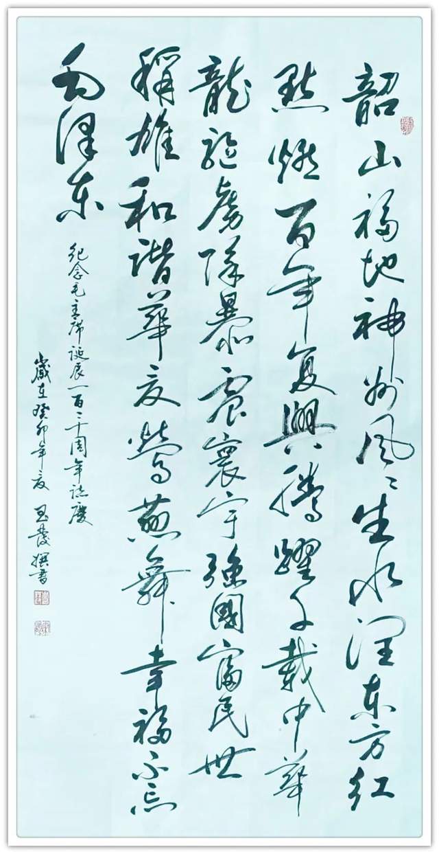 2013年纪念毛主席120周年“伟人颂中国梦”获书法一等奖;