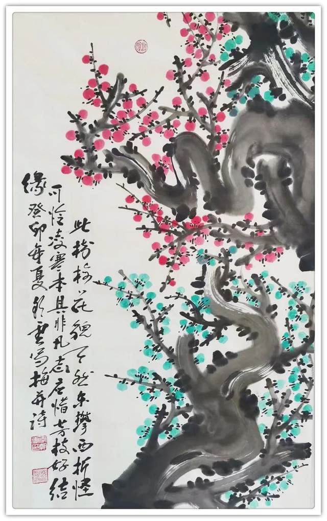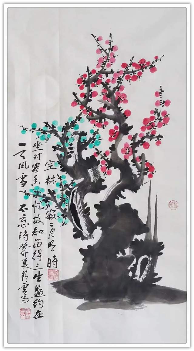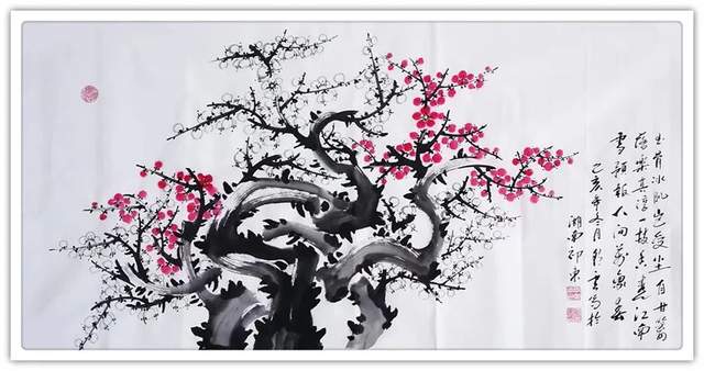 李朝云先生的花鸟画具有抒情性,追求意象美,融诗意、心境在其中,有深刻的精神文化内涵,通过畅神、抒情、达意、造境等形式来表达情感、陶冶心灵。作为富有新意内涵的艺术家,李朝云先生将自身的精神提升到一个“空灵而饱满”的境界,以鲜明的艺术语言和生动娴静的境界凸显情感和内在精神。其梅花作品赋予了高尚和坚贞的人格意义,成为文人精神世界的寄托和物化形式。让观者能寻觅到宁静淡雅的志趣,领悟到真挚情感的阐述;创作出坚强自傲的精神象征,以及意境为上的艺术语境。李朝云先生将画面注入了现代形态,处处浸润着他的情思、意趣、才气与性情;形与神的意趣,墨与色的交融,飘逸灵动之感油然而生,构成了既有传统,又富有强烈时代气息的艺术风貌。李朝云先生以丰厚的人文学养与艺术悟性,精准的构思,通过梅花、竹、鸟兽、应景等展现自己的精神追求。同时,体现出梅花的唯美质朴;使得作品增强了生动性,展示出新的艺术格局。通过不同的作品可以看出,从内到外,从形到意,可谓皆有一股高逸之气循循而生!无论是用笔的勾勒、运线、还是用墨的色彩浓淡,均自然透出笔端,不仅强调笔墨的写意性,更多的是所追求自然界中的恬静、闲适的品格,给人以美的享受。