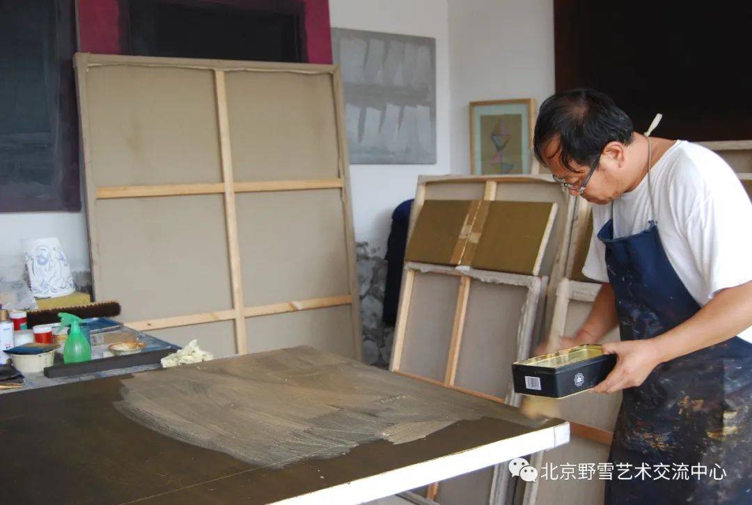 对于画家野雪,我不算陌生,第一次见到他是在三年前,我还是一家书画杂志社的编辑,一位知交的画家魏中兴老师带来一位诙谐风趣的人,介绍说这是国内知名的画家,也是诗人,野雪老师,克林顿和希拉里对于他的画极度赏识。我那时对于书画仅仅是入门,不敢在专家面前班门弄斧,好在自己当时写了一些东西,和他聊了一些诗词歌赋方面的东西,应该说受益匪浅吧!后来分开,一别就是三年,此次再见,又有了很多说不出的感触。在书画界的自由撰稿人子骏的陪同下,我来到宋庄,这个在国内非常知名的画家村,野雪老师已然等在他的画室门口,那份率真与个性还是一如当初,笑容仍然是那么爽朗真诚。和三年前没太多的变化,远远地招呼我们,打消了我原本幻想的隔膜,更增加了我想进一步了解他的愿望。