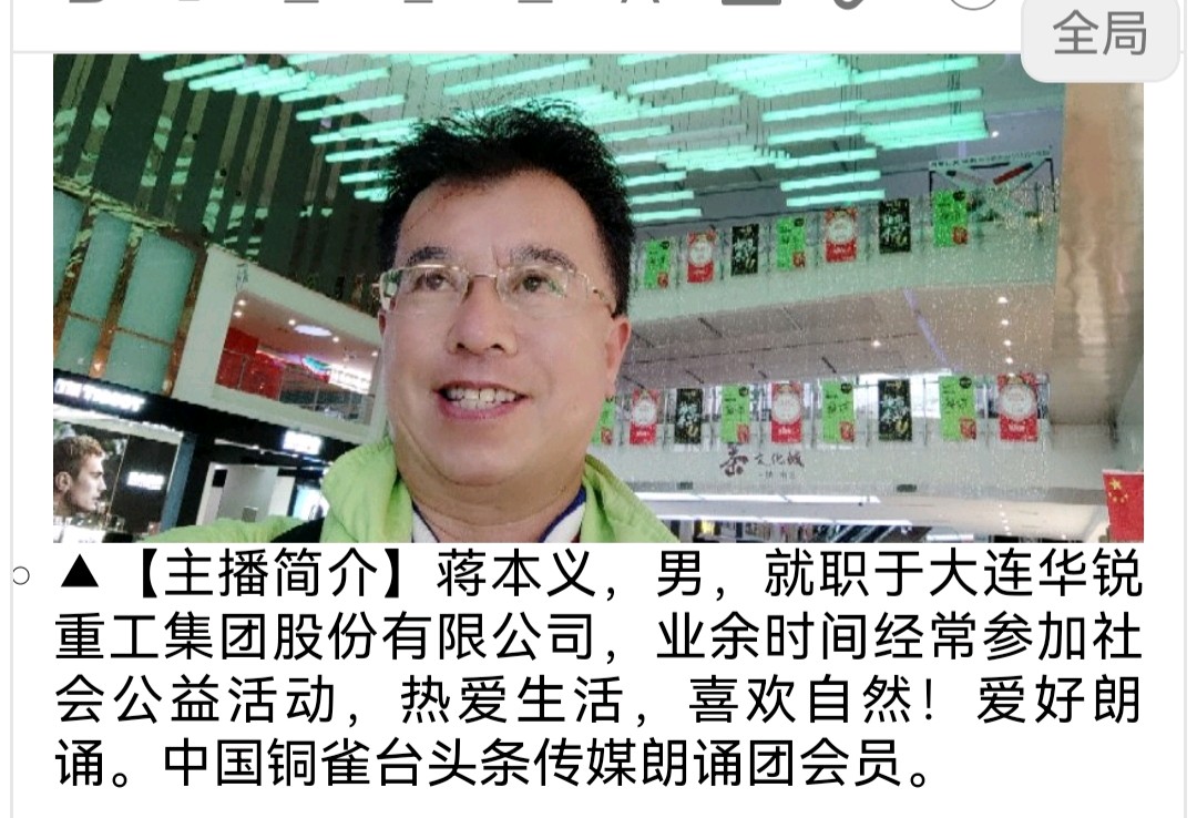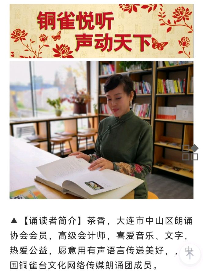 王桂兰:退休前在辽宁省外贸公司做外销工作。爱好舞蹈、喜欢阅读、喜好文字,热爱朗诵、用有声的语言渲染人间正道!用轻歌曼舞提升自我修行,让美好的生活充满阳光。头条传媒双推星辉朗诵艺术团成员。