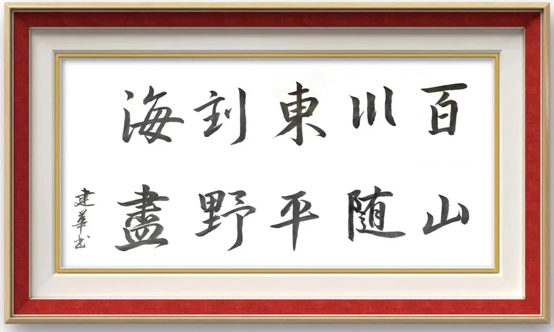 黄河隔槛涛腾雾,岱岳临窗石起云。