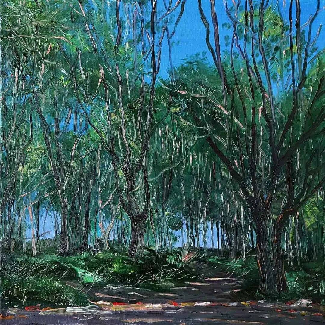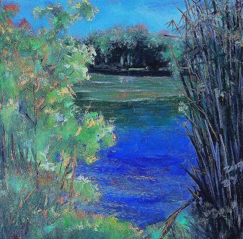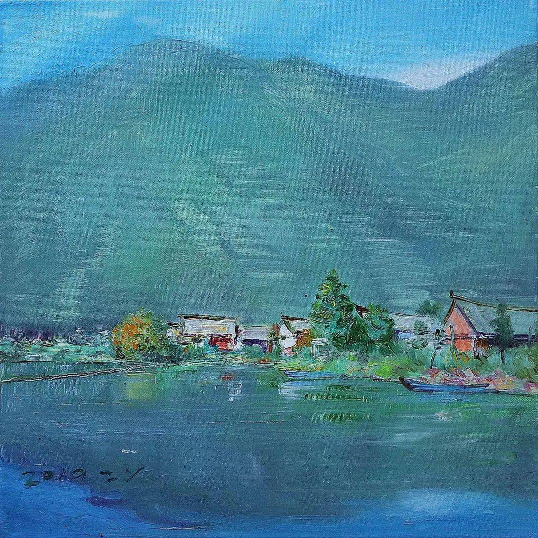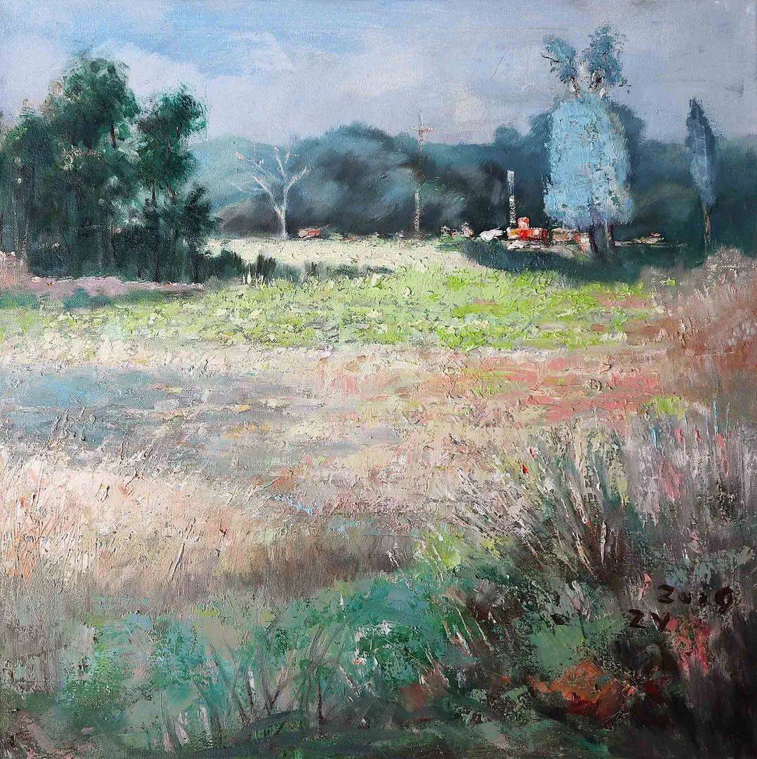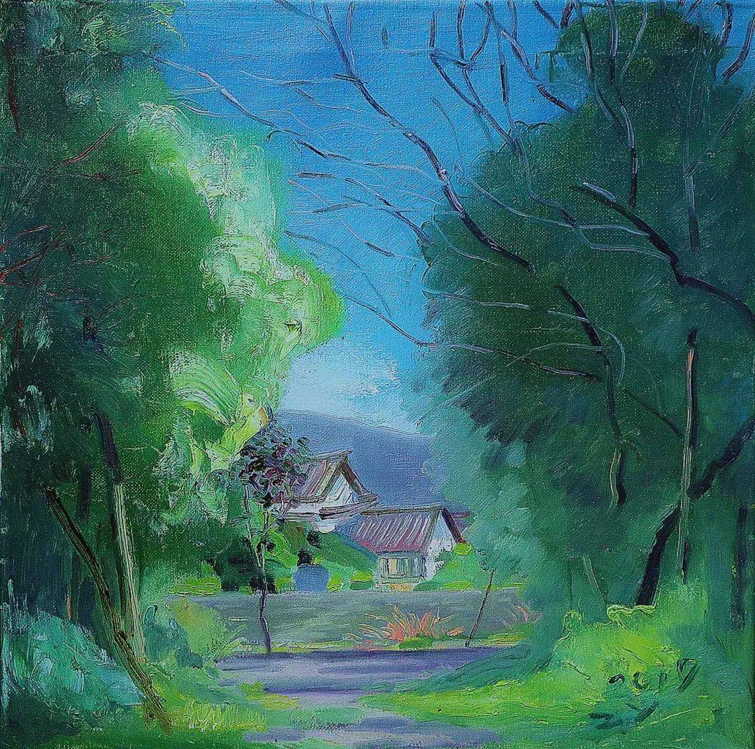 在张毅先生的作品中,多能感受到自然的韵律与芬芳,绿和蓝是他作品中的主要色调。看这样的作品,总能让我们心情愉悦,思想飞翔。
