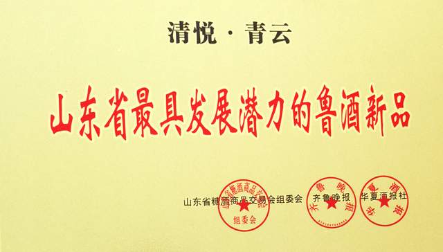 在53°清悦国韵酒荣获高端鲁酒优质产品、中国年度清香新名酒、中国酒业华樽杯青云奖、华尊杯山东省清香型白酒品牌价值第一名和53度“清悦青云”酒被评为中国酒业华夏奖.最具创新价值品牌基础上,53度“清悦青云”酒又被认定为山东省最具发展潜力的鲁酒新品,标志着“鲁派清香”系列产品在鲁酒市场的发展潜力和竞争力得到了市场和行业的高度认可。(刘炳栋)