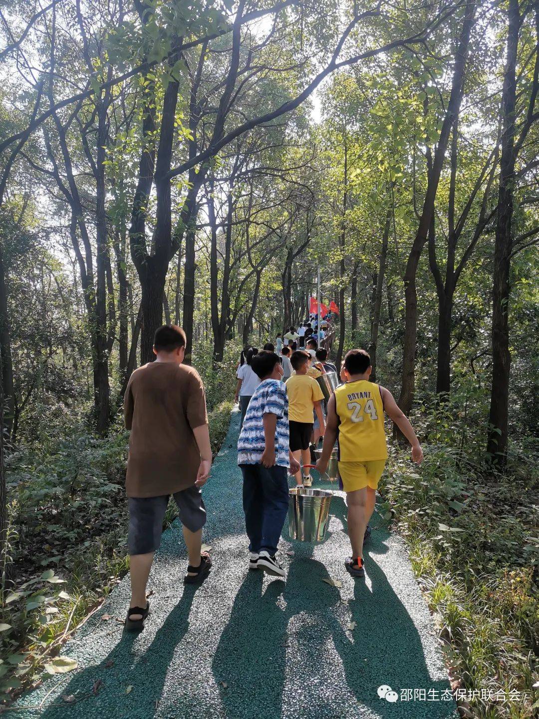 佘湖山公益生态景观林以邵阳市生态环境保护志愿者联合会为主,联合市生态环境局、市林业局、双清区委统战部、佘湖小学、佘湖山公园管理处等单位共同打造,全程维护,确保每一棵树苗都成活。