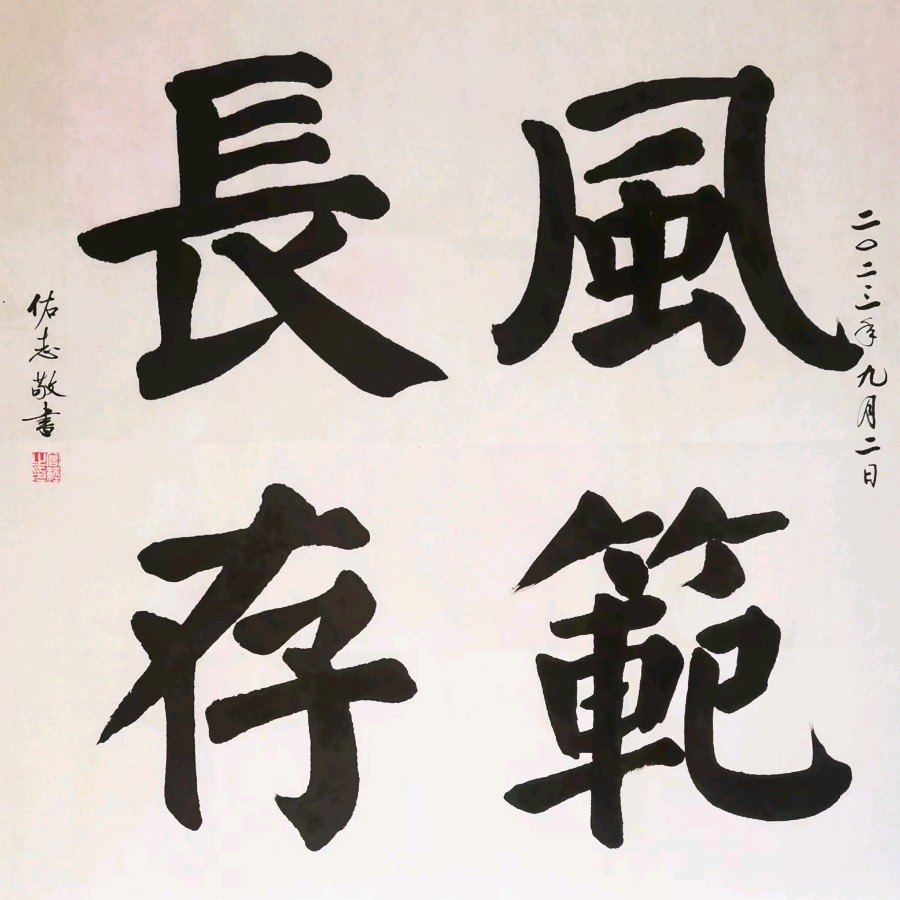 第二届“全国文明家庭”荣誉获得者曾佑志同志得知龚全珍老阿姨去世的消息,亲笔创作了书法作品“风范长存”。