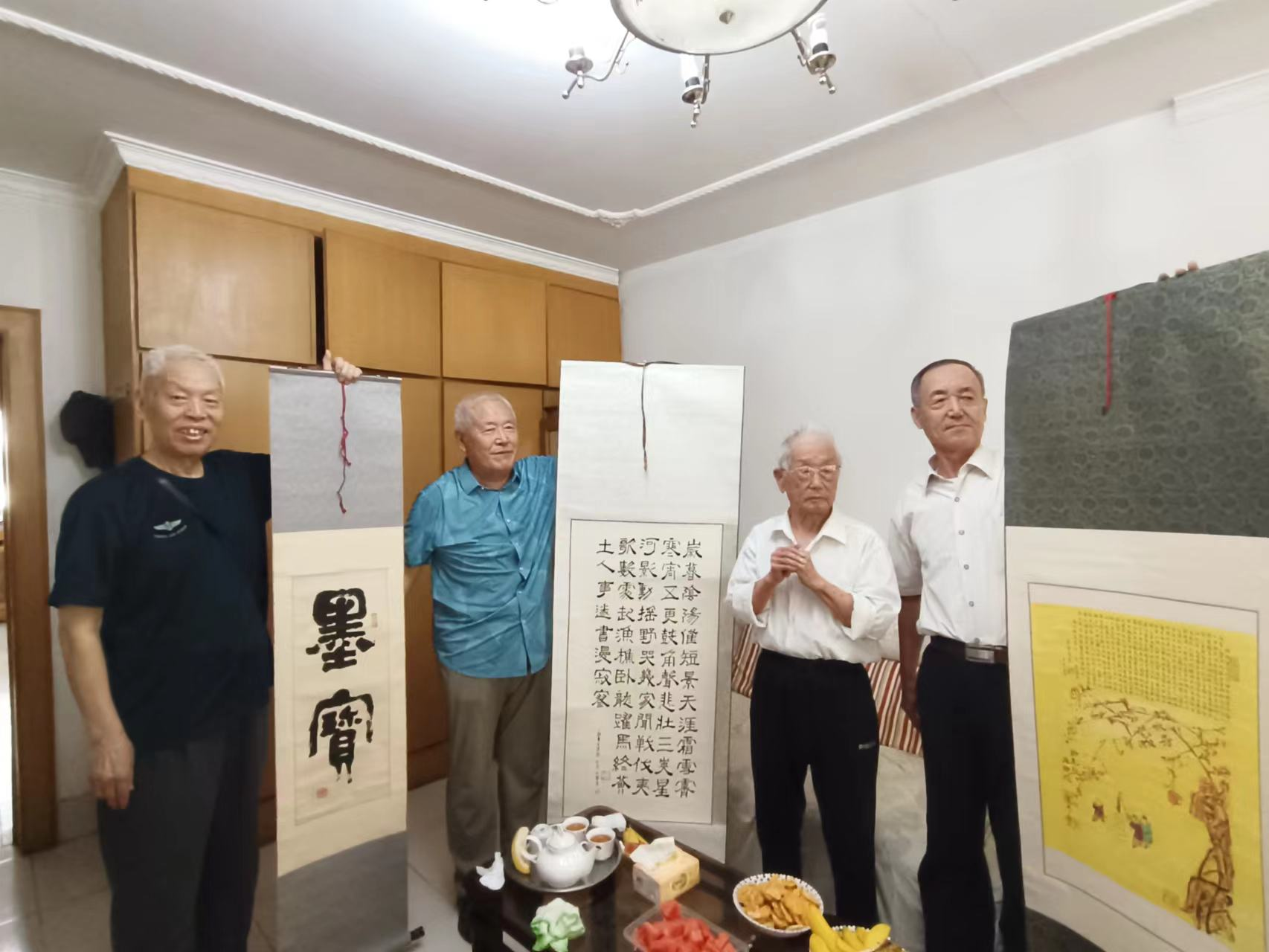 李老红光满面,神采奕奕,健谈幽默,他高兴地回忆在岗时的历历目目,离休后的般般样样,参加银枫文苑以来的点点滴滴,自始至终洋溢着自信、坦然和喜悦。他高兴地拿出珍藏多年,自己最得意的书画作品分赠给大家。李老打开书画,详细介绍创作过程、作品特点及所含寓意,让在场众人肃然起敬赞不绝口。