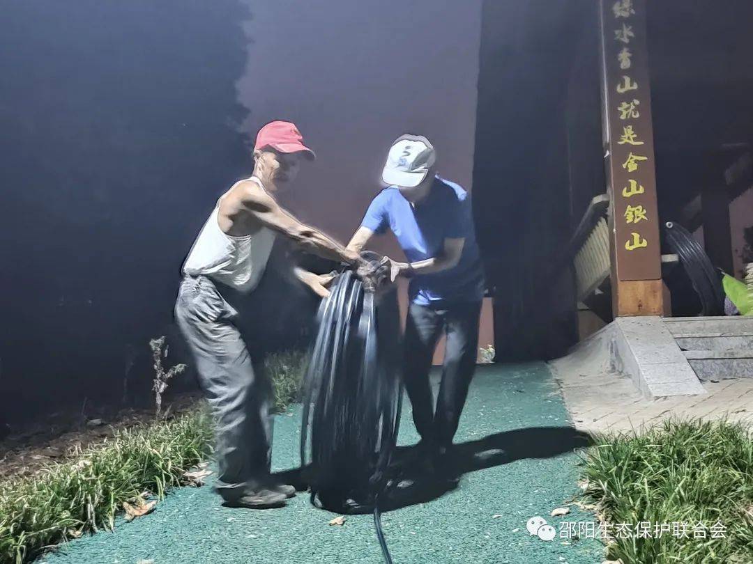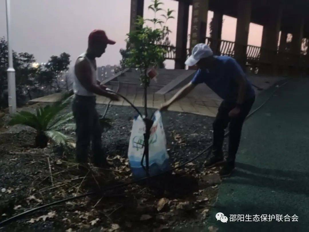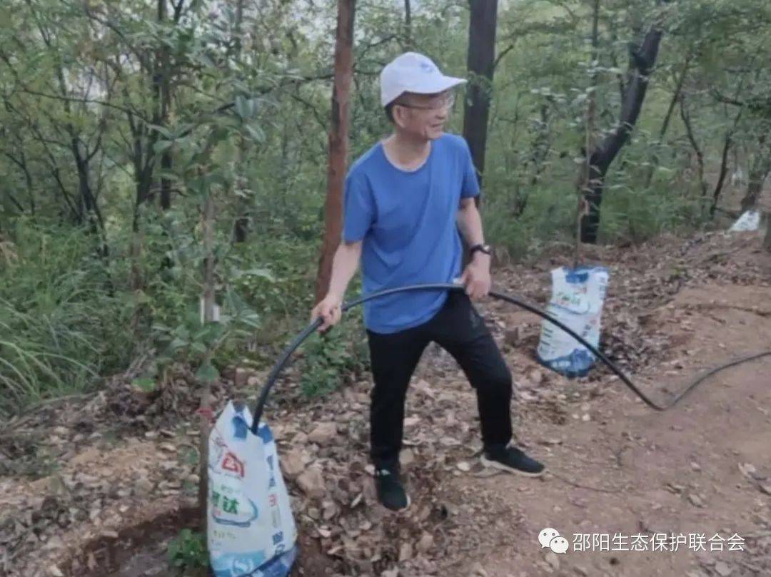 9月25日下午,邵阳市生态环境保护志愿者联合会秘书长胡浴明,带领三位志愿者上山浇树。