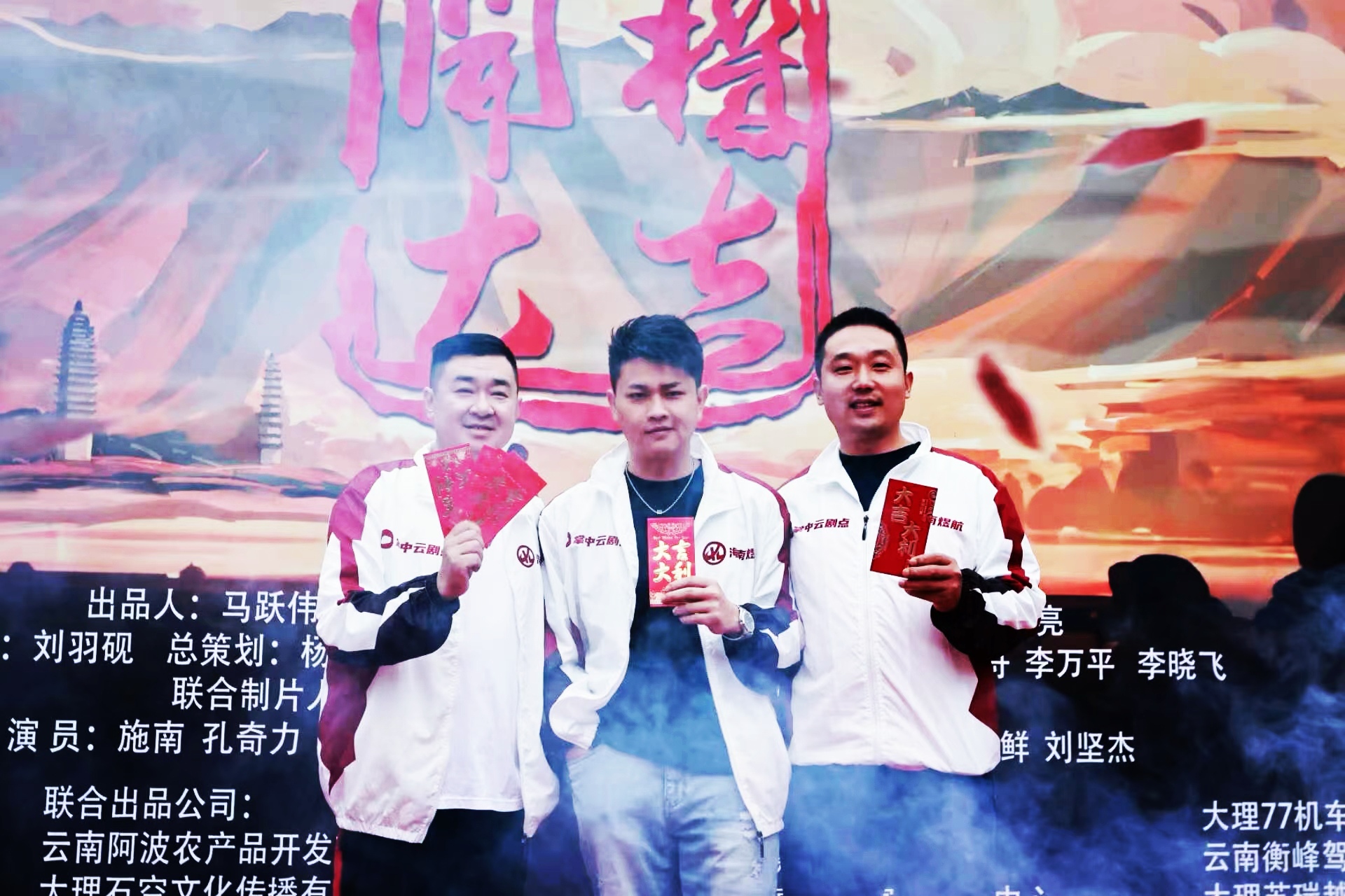 出品人马跃伟、王树波,总制片人刘羽砚,制片人李聪、方之舟、李晓飞、李万平,总策划杨晗,联合出品人纳素仙、杨凯杰、杨晗、康永亮,联合制片人李洪旺、罗妍秋、吕帅峰,导演管臣、联合导演廖原、演员施南、孔奇力、袁宁、钟远哲、 曹淼、王艺霏、赵小刚、王若菡、李丽鲜、刘坚杰、汤晶携主创人员与中国花卉协会兰花分会副会长、大理荡山洲兰园孙智勇,三江.滇和缘宴会艺术中心董事长杨康,大理石空文化传播董事长李振葵,中国水兵舞大联盟昆明市主席、昆明星耀艺术团团长姜启凤,拿云雪茄俱乐部总经理张剑锋,大理 77 机车俱乐部负责人杨可,大理苏瑞越野俱乐部总经理苏瑞,大理州江西商会会长余良等现场来宾、媒体,一同出席并见证了此次开机仪式。