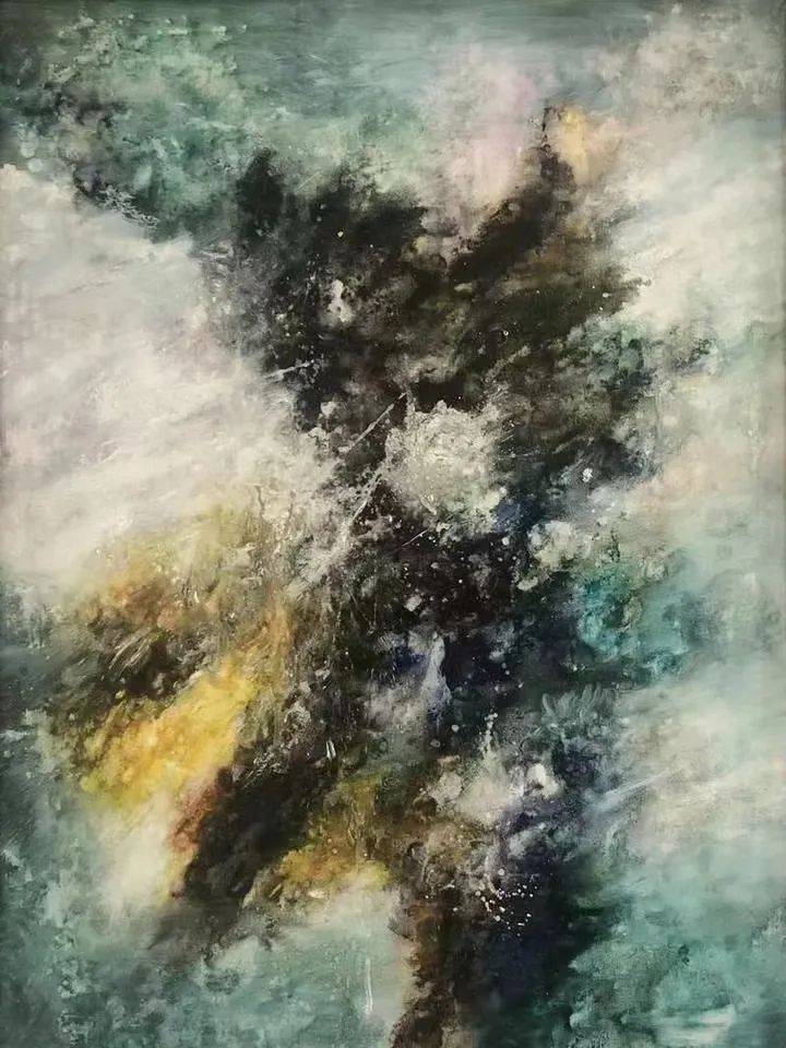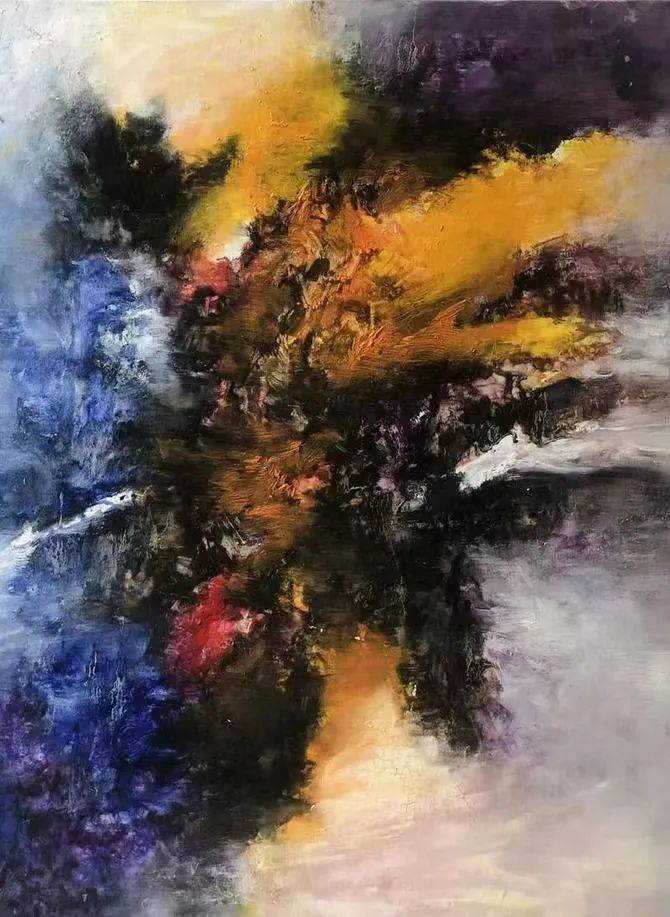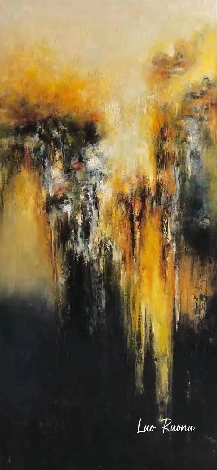 在画中,罗若娜极其重视于多元化的创作方式,通幅作品有着明显的东方哲学意味,但在技法上则是以西方的审美技法为主,用笔具张力,设色具空灵,与一般油画家不同,罗若娜的油画是充满了活力和潇散,满满的激情质感充斥着整张画面!画中强烈的视觉冲击感和艺术魄力,能够牢牢地抓住观赏者的神魄和目光,甚至在有些时候,更会让人难以找到相对应的观赏点和切入口,人们观赏起来像是迷路在梦境中,又像是游离在大雾之中!