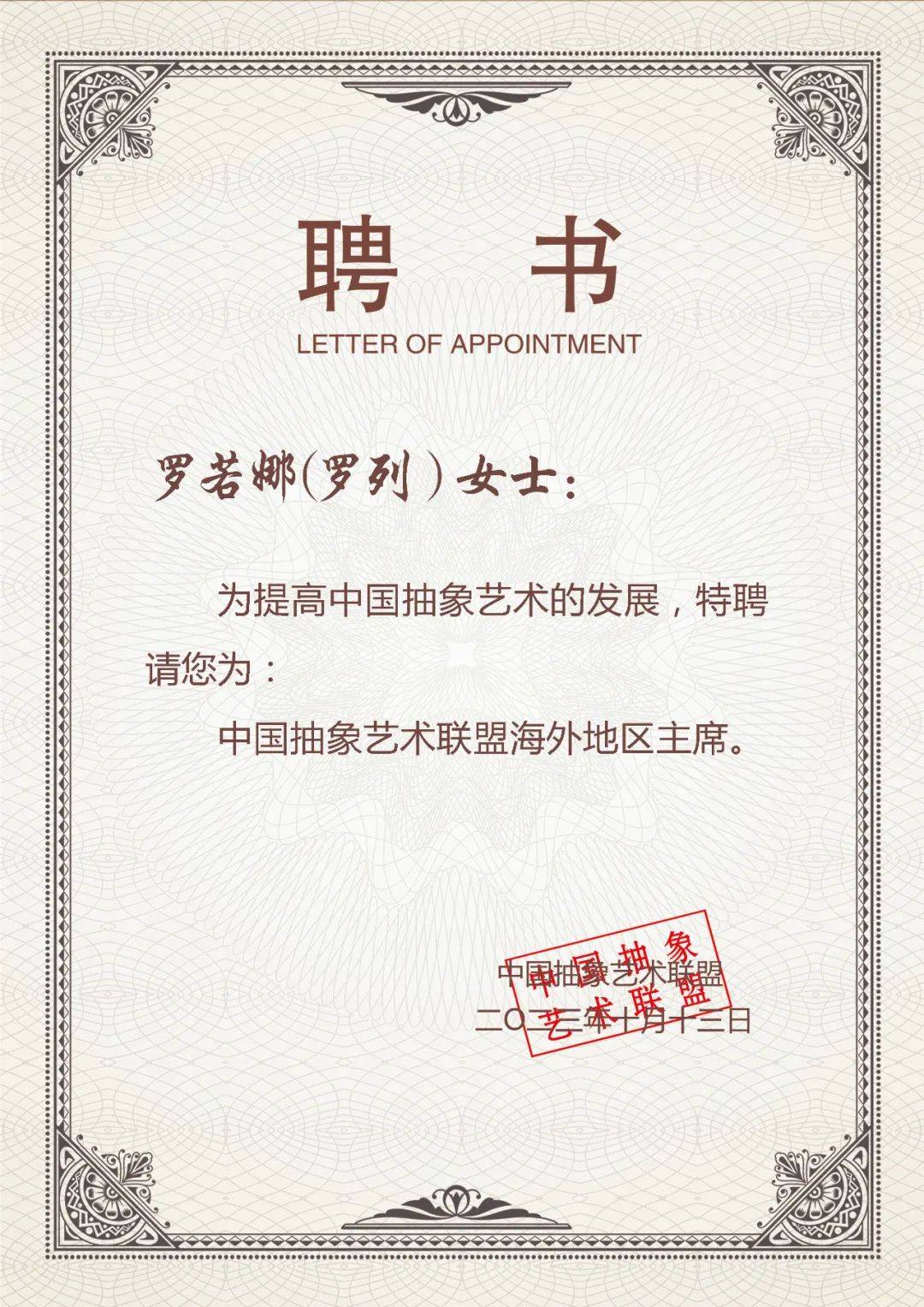 罗若娜(罗列)当选为中国抽象艺术联盟海外地区主席