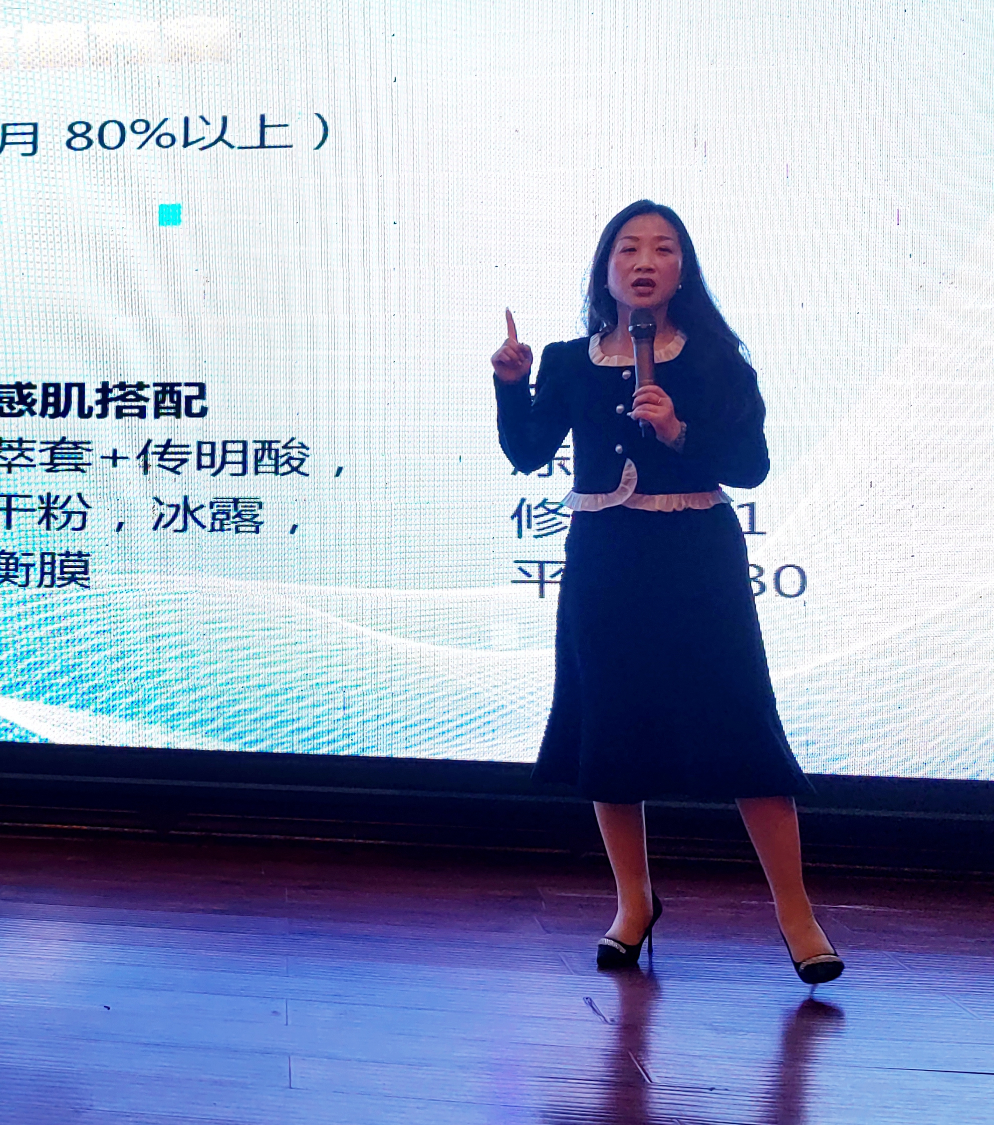 香港维亚丽莎生物科技有限公司大陆运营部副总裁、丽莎美业《丽莎涵美》品牌大陆运营部培训部主管兼轻医美项目负责人韩翠丽,为大家针对定性斑(遗传性雀斑等)皮肤问题进行技术更新授课。