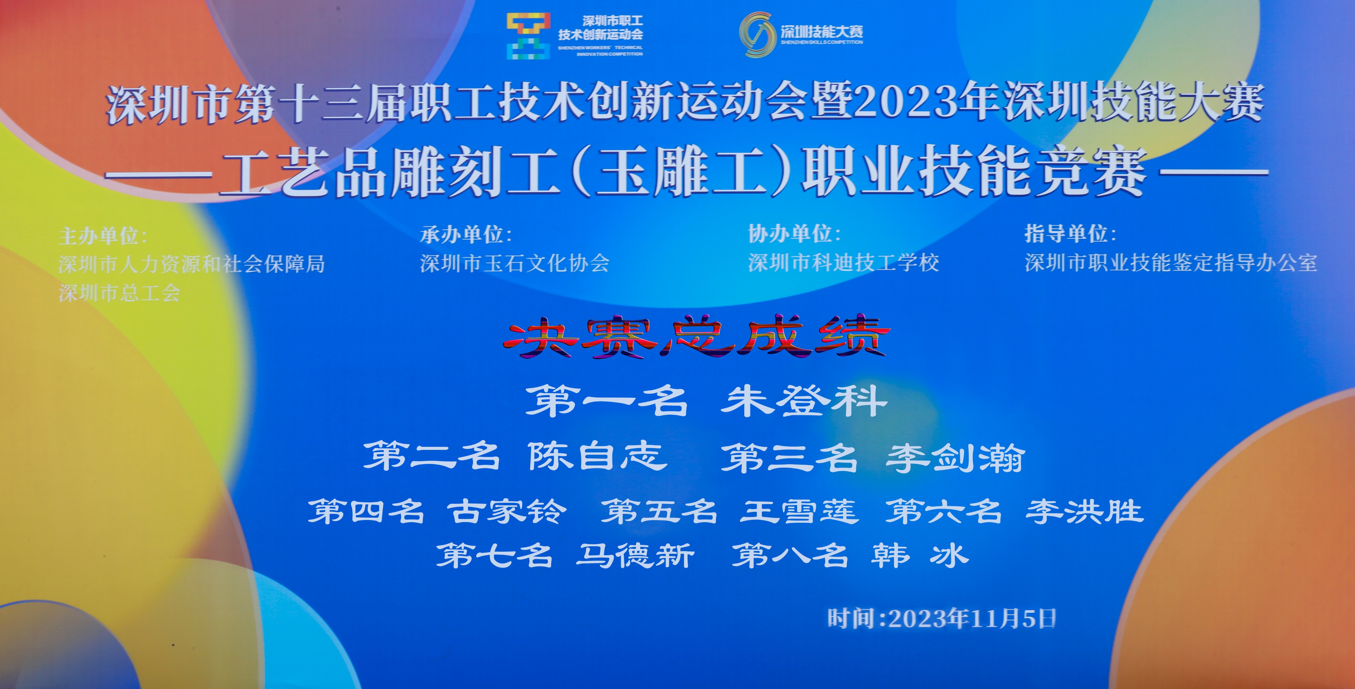 竞赛由深圳市职业技能鉴定指导办公室指导,深圳市人力资源和社会保障局、深圳市总工会主办,深圳市玉石文化协会承办,深圳市科迪技工学校协办。