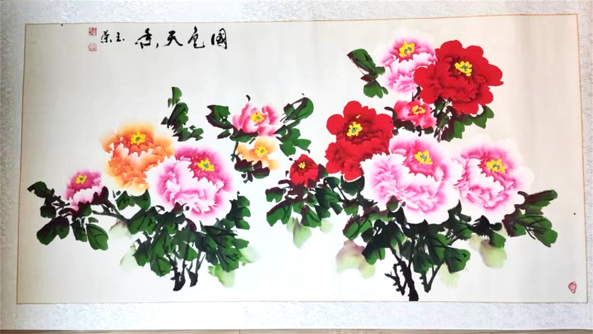 玉荣老师:画出的牡丹作品,统分表现出了牡丹的富贵和倔强的个性特色,使得花艳丽灵动,神采奕奕, 给人以丰满雍容,富贵高雅之感,也是她牡丹画作品呈现给中外朋友最大亮点。