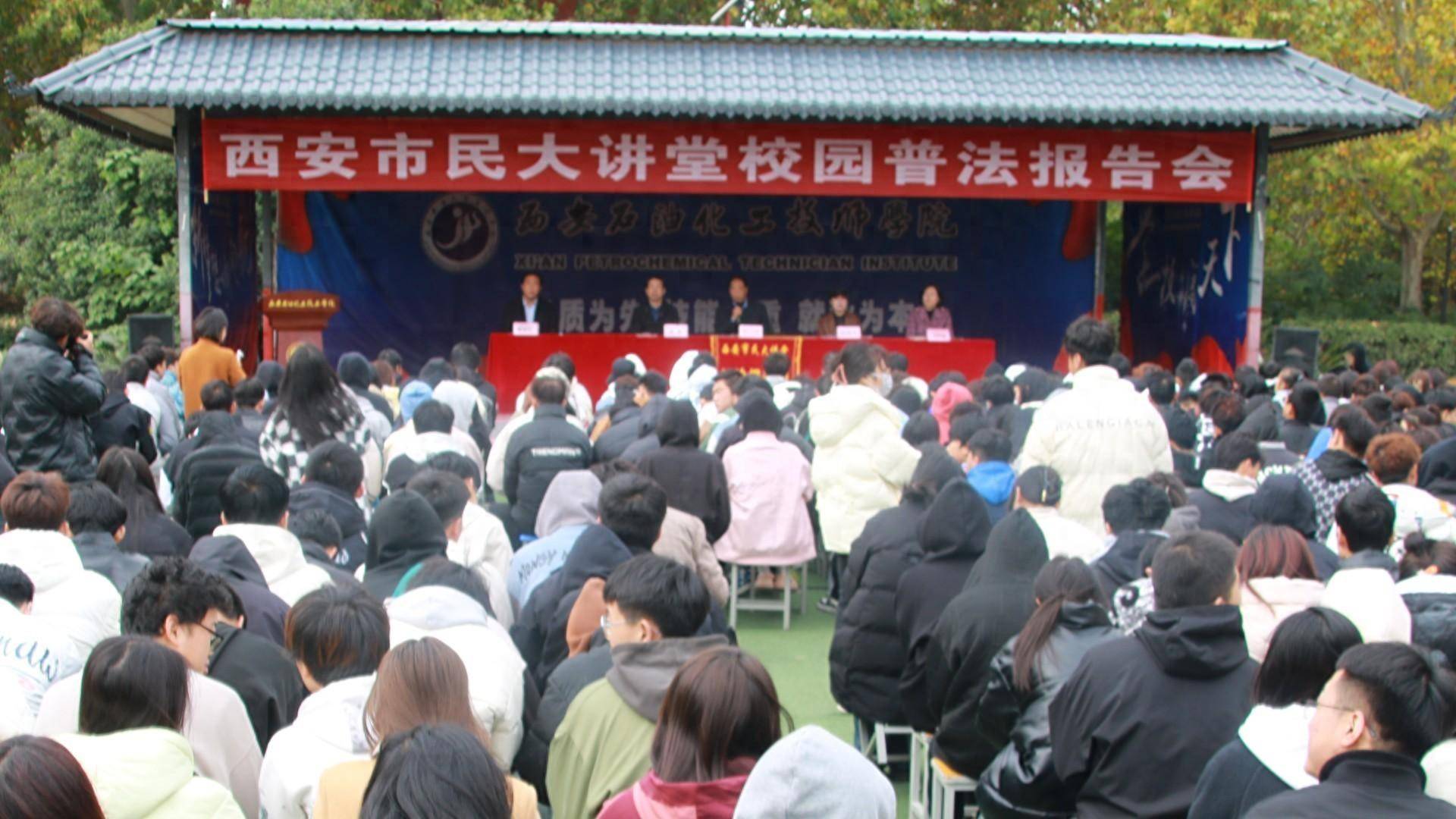 11月10日上午,西安市民大讲堂法治报告团一行4人,来到位于西安高陵区的西安石油化工技工学校,举办校园普法报告会,开展与法同行、法治进校园活动。