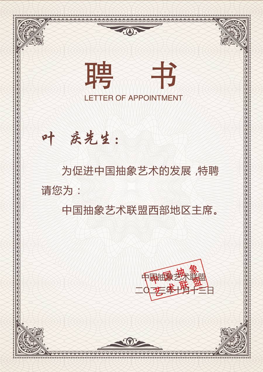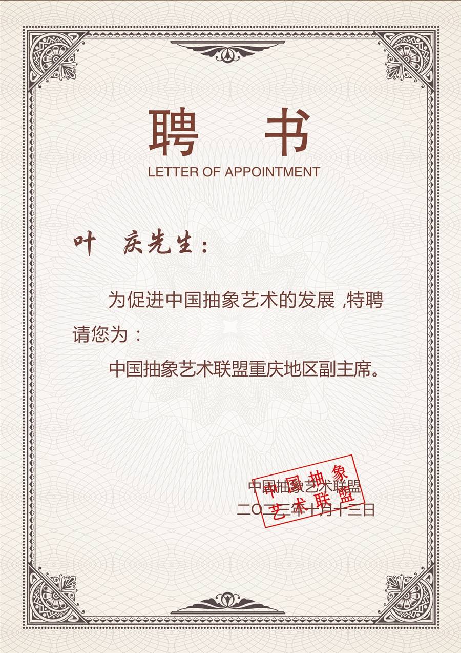\ 艺术家叶庆当选中国抽象艺术联盟西部地区主席 重庆地区副主席