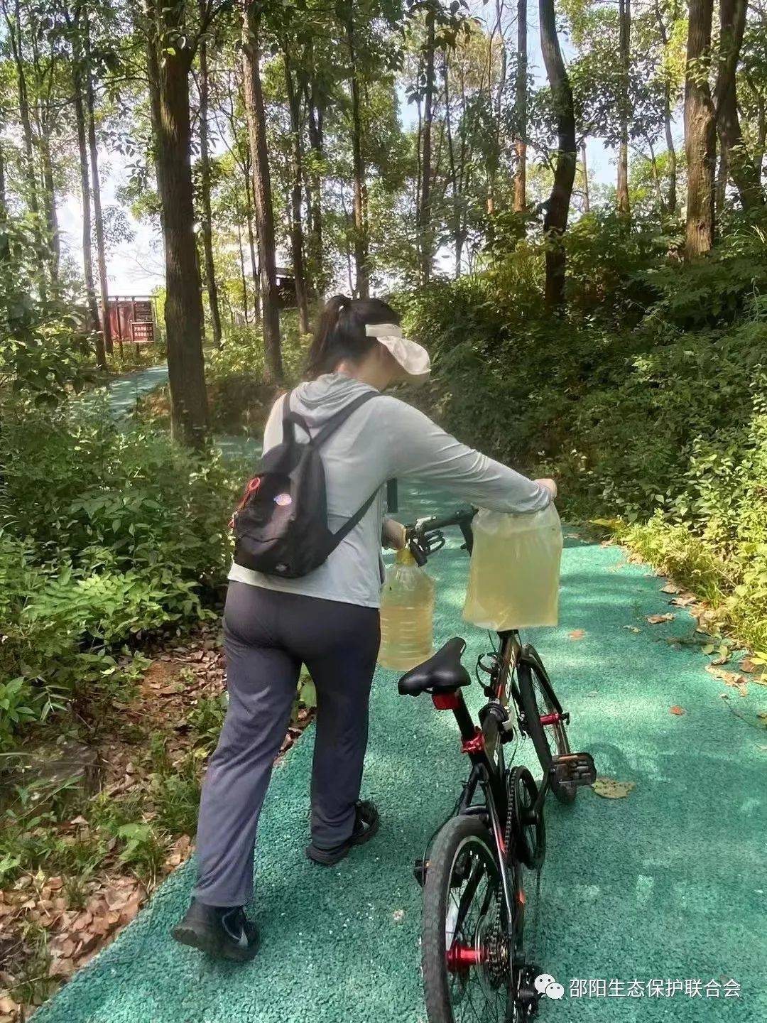 在邵阳佘湖山,有一片生态景观公益林,全程由邵阳市生态环境保护志愿者联合会志愿者们打造并维护,"生态美家园美大美邵阳,公益心公益行天下为公。"
