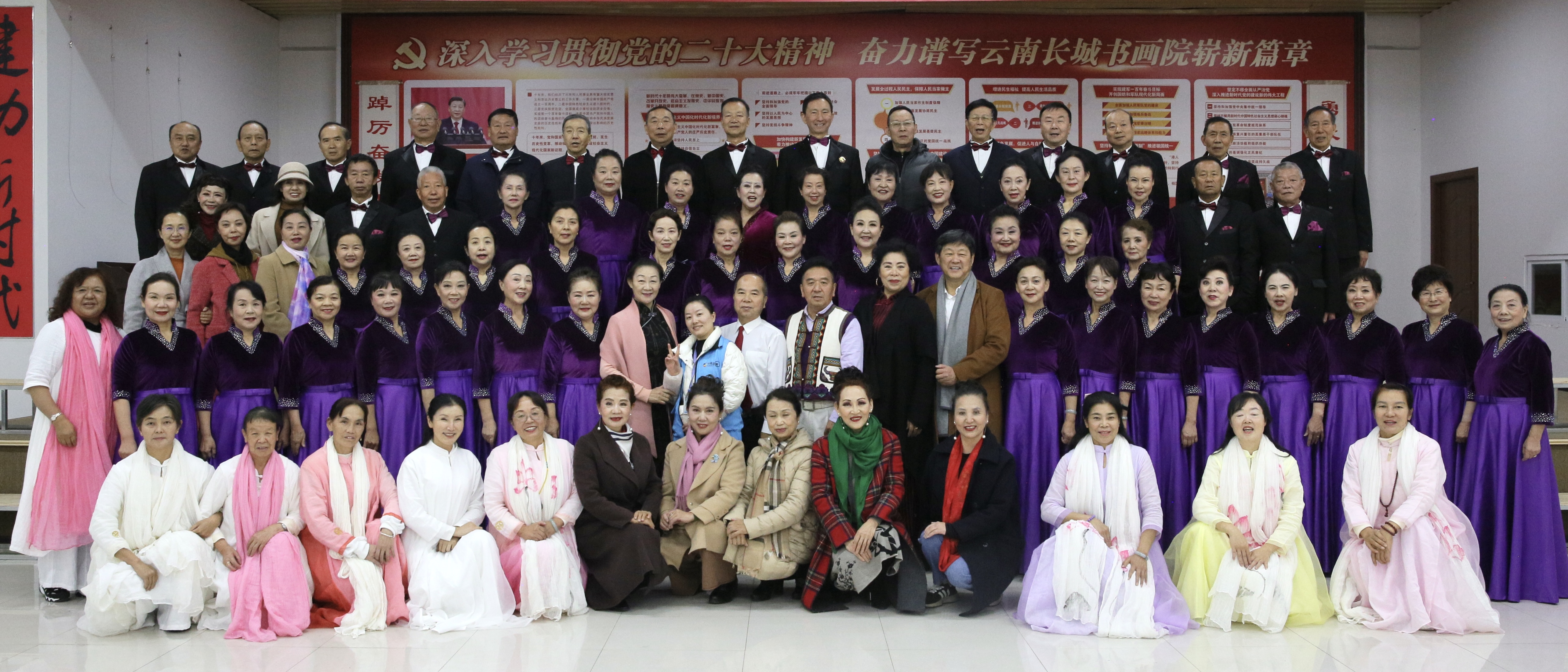 受各团参演热情的感染,云南省老年合唱协会郑明会长、童凤华常务副会长、王建秘书长也在百忙之中抽出时间到现场看望团队,合影留念。
