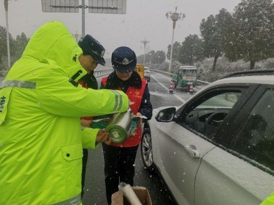12月15日,因雨雪冰冻天气驻马店辖区高速公路实行交通管制,河南交投中原高速驻马店分公司驻马店站立即组织党员志愿者开展“冬日暖阳”志愿服务活动。