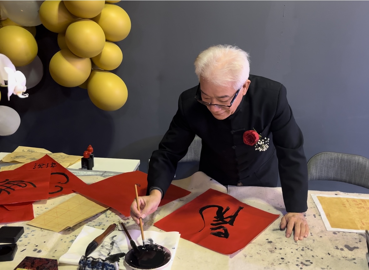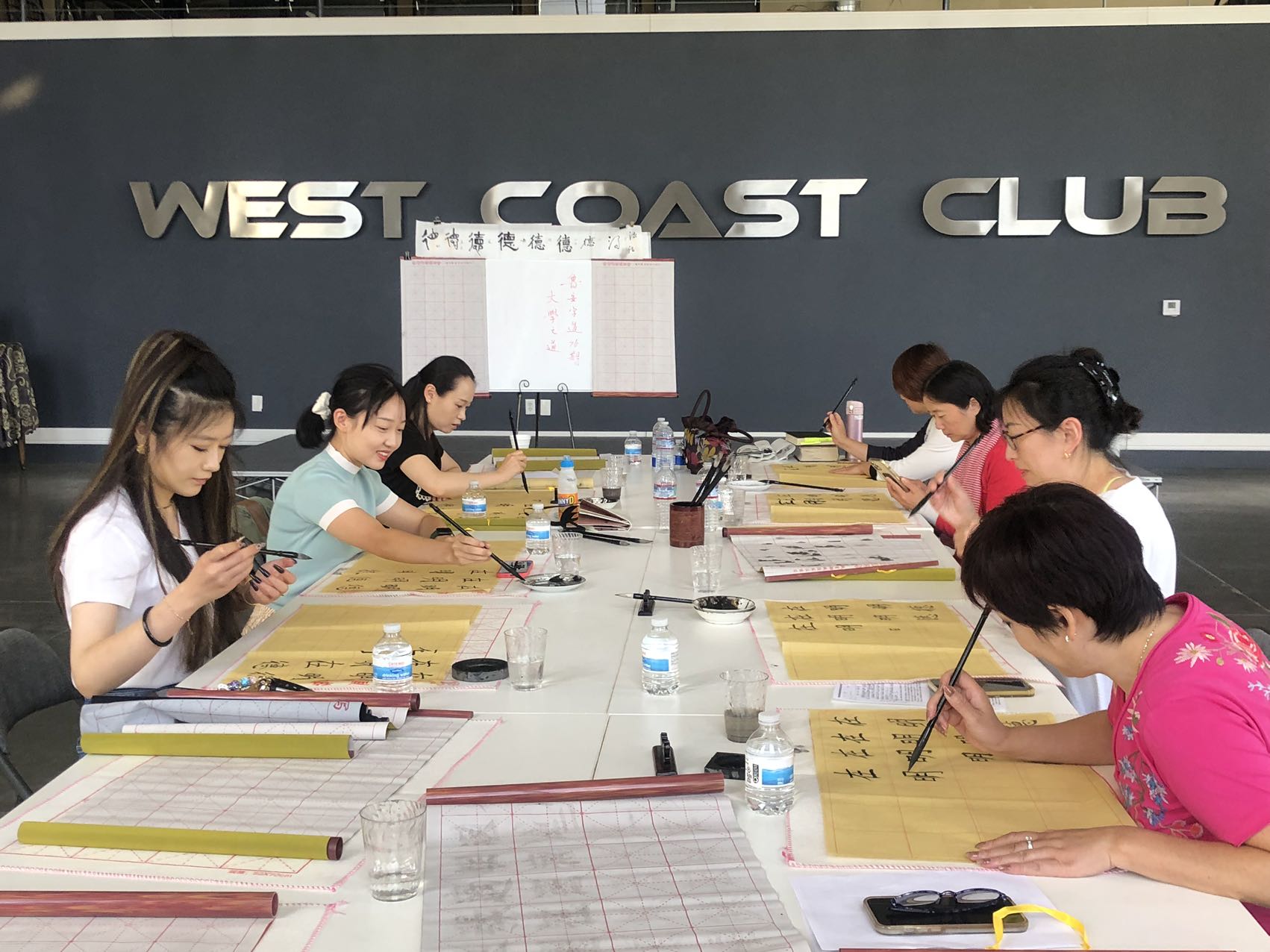 ( 美国多元文化服务中心鲁安现场为大家写毛笔字)