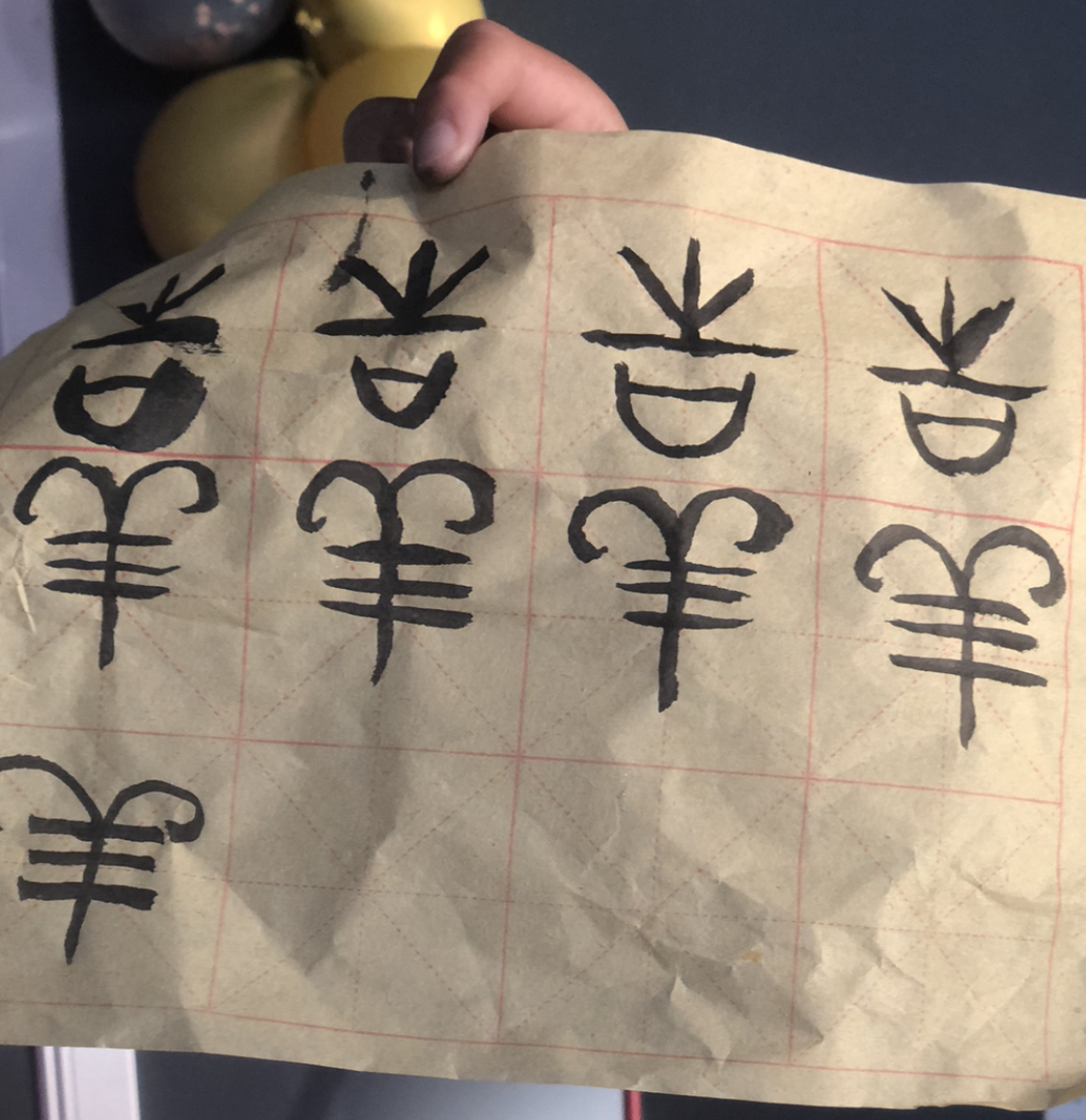 在南加州尔湾有这样一批刚刚从大学毕业, 正在努力创业, 规划人生的年轻人, 他们对中华文化, 甲骨文明的向往, 书写毛笔字, 非常渴望; 和他们一起讨论甲骨文字源释义, 共同探讨《大学之道》, 抄写心经, 和练习书写毛笔字, 作为老师, 心中十分欣慰.