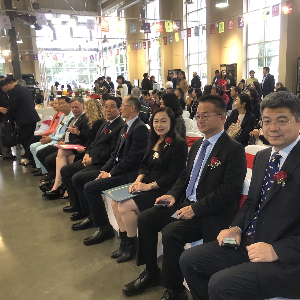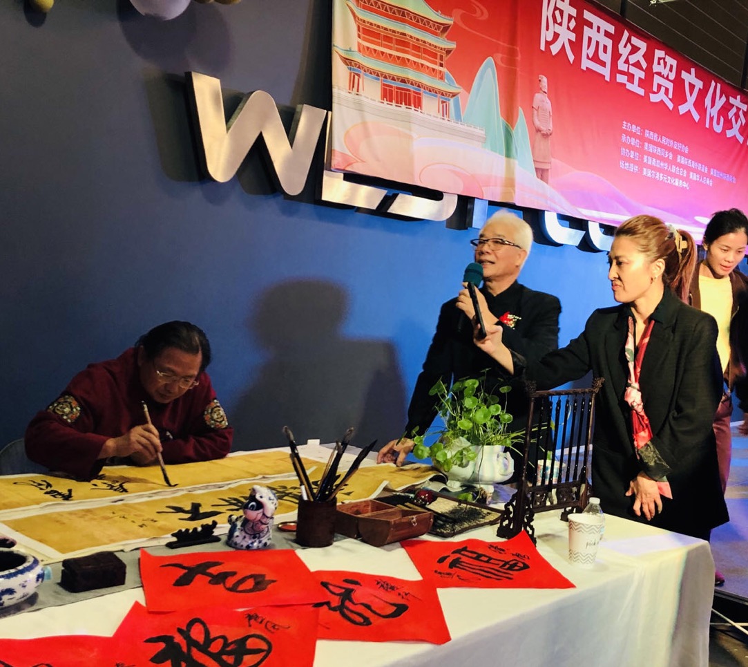 在文化交流活动现场, 我现场写了一幅《有朋自远方来.不亦乐乎》 , 喵喵, 佳慧, 悠然也写了龙, 吉祥, 福字送给陕西访美代表团, 晓华老师也赠送了书法作品, 在现场, 中国驻洛杉矶总领事馆副总领事施远强, 加州阿凯迪亚市华裔市长王艾琳和陕西经贸文化访美代表团团长杨冠军一起合影留念, 也为这次文化交流活动划下了圆满的句点.