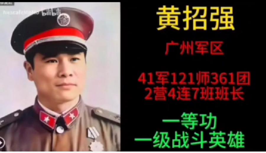 在这次对越作战中,黄招强一个人神勇地消灭了17名敌人,还与战友一起活捉了一名越军少尉,荣立一等功,成为当之无愧的“战斗英雄”。