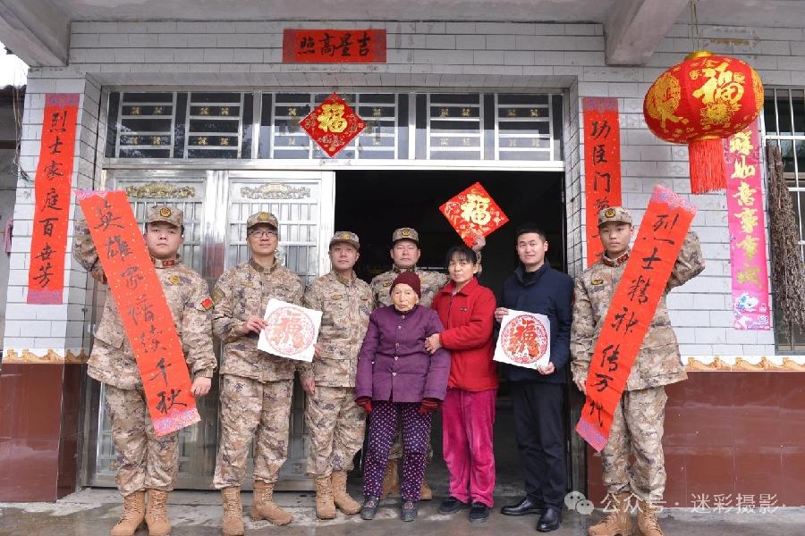 春节来临之际,看着门前这条平坦结实的水泥路;看着官兵又是为自家打扫积雪,又是贴春联、挂灯笼,李银莲老人露出了宽慰的笑容……。”