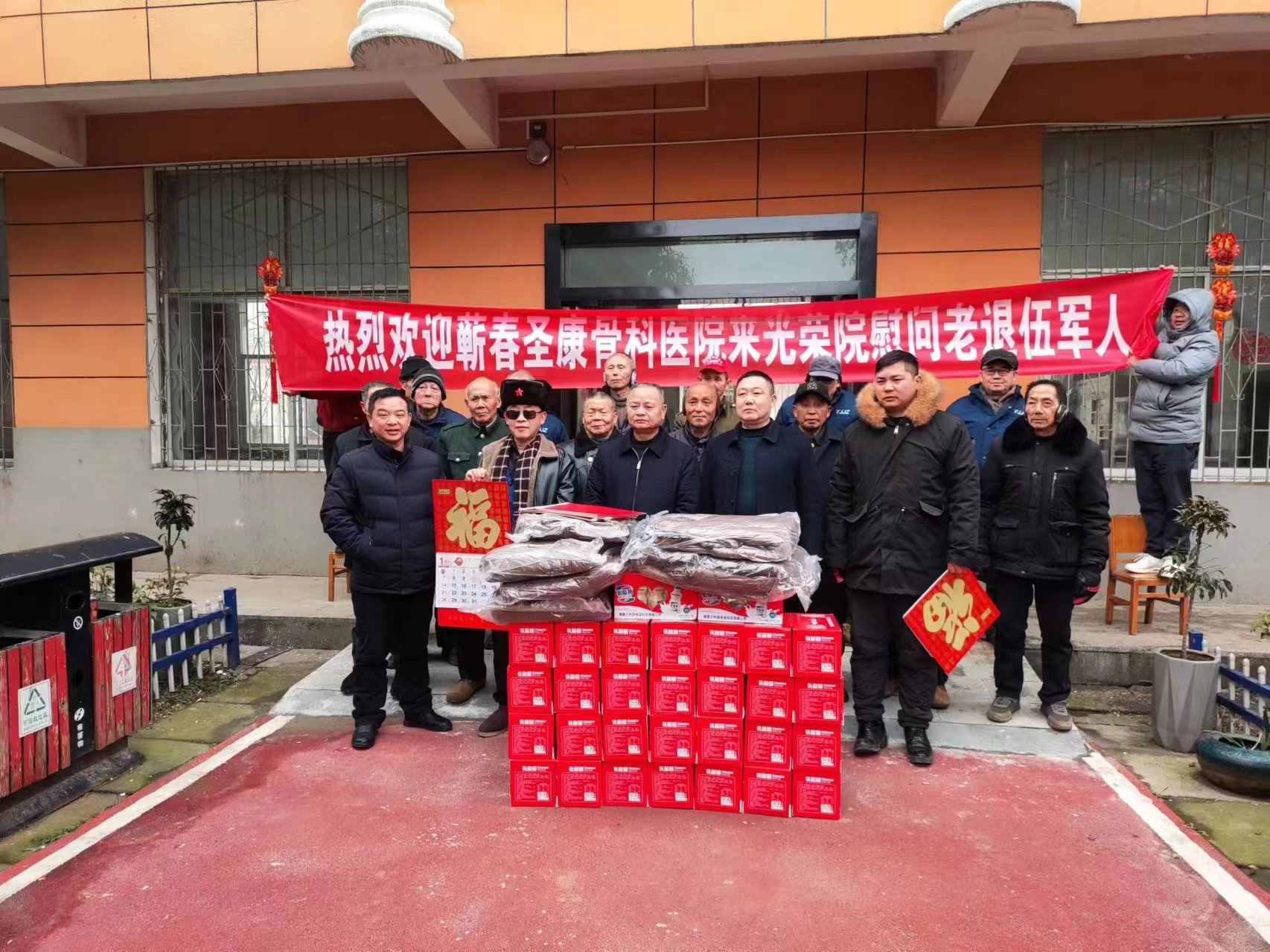湖北蕲春讯(叶成 骆杰 徐雯) 爱心企业家,帮扶人民夸。2024年2月5日上午,湖北省蕲春县圣康骨科医院张文院长,蕲春县关爱退役军人协会范学成副会长,退役军人协会秘书长叶成和湖北省″双军″模范家庭家长周松一起,前往蕲春县光荣院走访慰问退伍老军人。