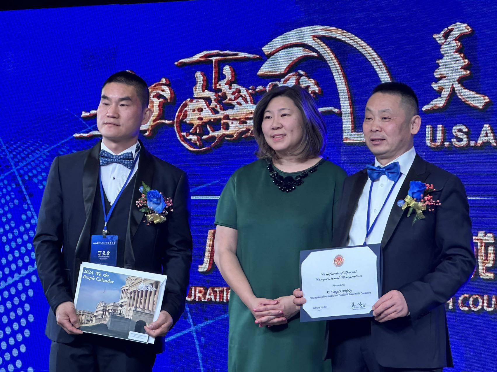 (州长霍楚办公室亚裔事务主任马肖恩带来州长的嘉奖状)