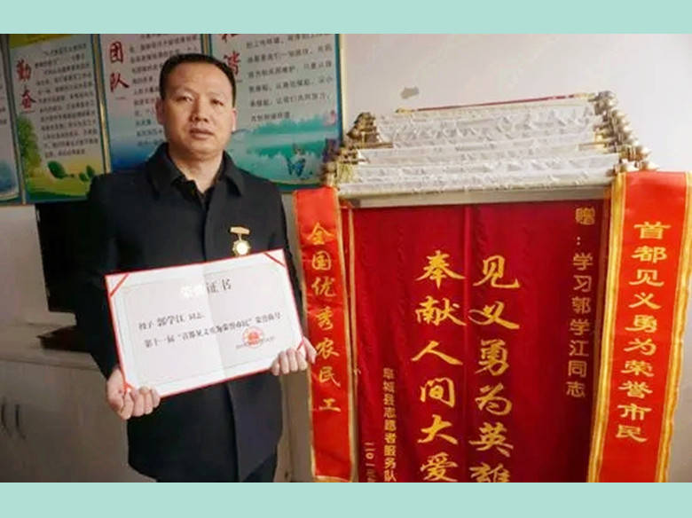 退役29年来,郭学江积极担当作为,取得了有目共睹的成绩,他个人也先后被授予“感动阜城人物”、“首都见义勇为荣誉市民”、“衡水最美退役军人”、“全国优秀农民工”、“河北省优秀退役军人”等荣誉称号,还先后荣获“河北省政府质量奖提名奖”、“衡水市政府质量奖”,并被推选为衡水市第六届人大代表、阜城县第十七届人大常委。