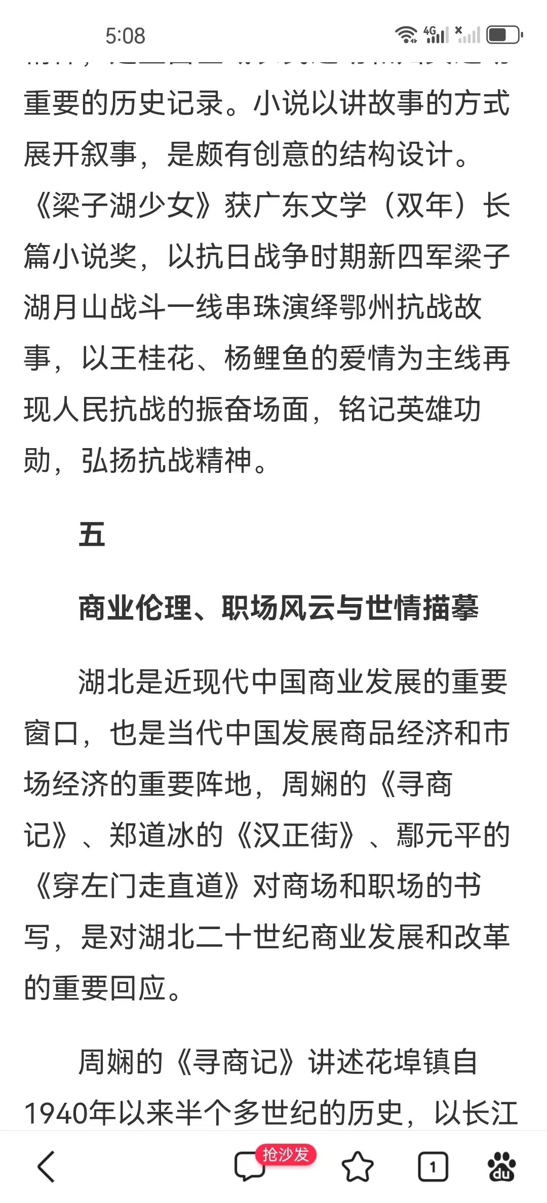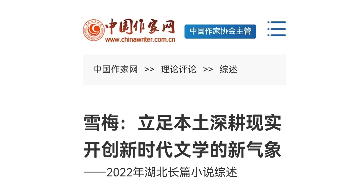 雪梅评论说2022年湖北长篇小说的历史叙事大多立足地方,将民间习俗,民族文化,革命故事融入其中,多维度呈现历史的面貌。