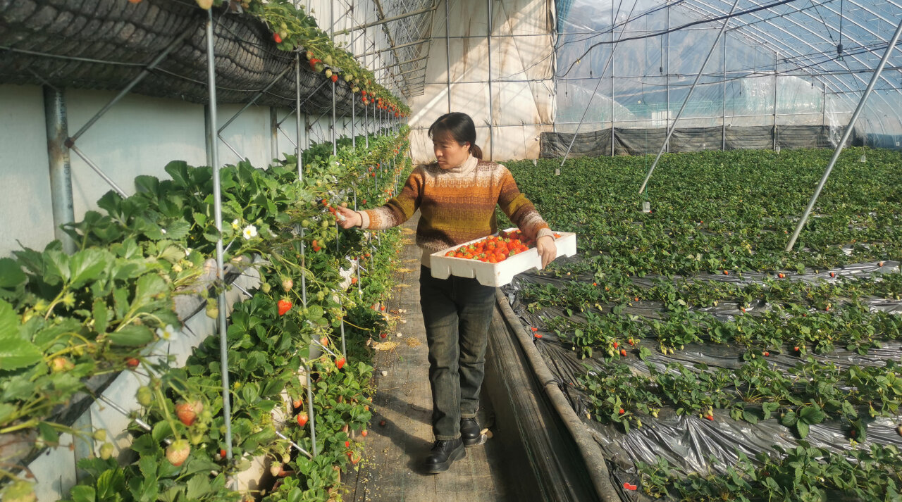 3月1日,在张家口市蔚县宋家庄镇石荒村草莓大棚内,村民正在采摘草莓。河北日报通讯员 王鹏 摄