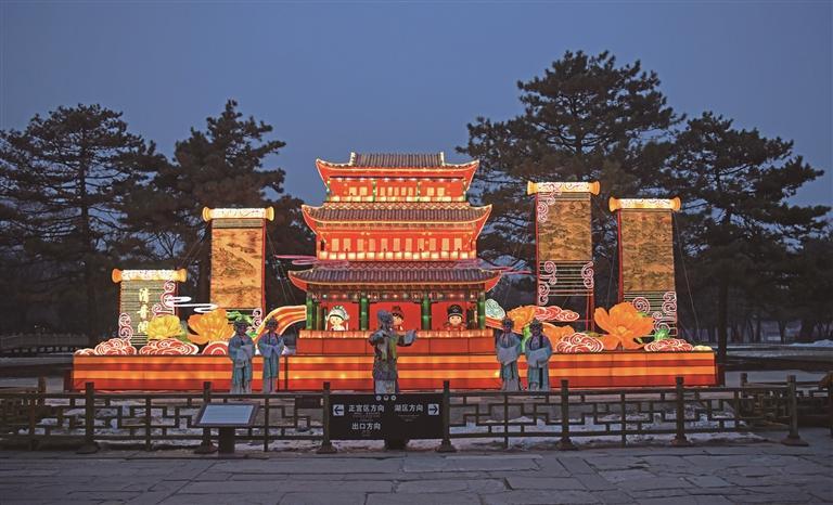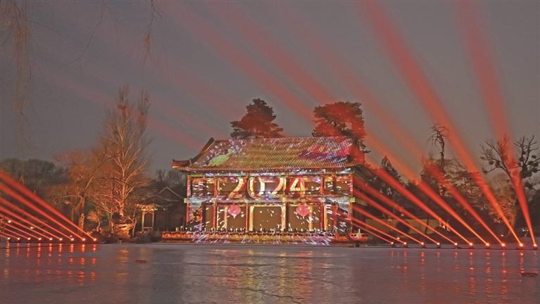 2月2日,在中央广播电视总台主持人李梓萌热情洋溢的介绍中,一场大型直播——央视新闻《“青”爱的城》在避暑山庄景区内正式启动。在镜头中,所见之处皆是清朝建筑或古迹,满耳听到的是康乾“盛世”故事,正应了那句话:一座山庄半部清朝史。随着主播的脚步,烟雨楼附近,木栈道上空的一条金色祥龙灯映入眼帘,鸟瞰犹如腾飞的游龙。随着投映在烟雨楼上的倒计时,一场以烟雨楼为视觉核心载体,通过科技灯光、3D投影技术以及飞天凤凰装置进行核心光影秀的演艺开启了此次直播的重头戏——“盛世山庄”2024故宫·避暑山庄·新春宫灯展正式开展。