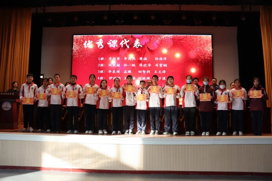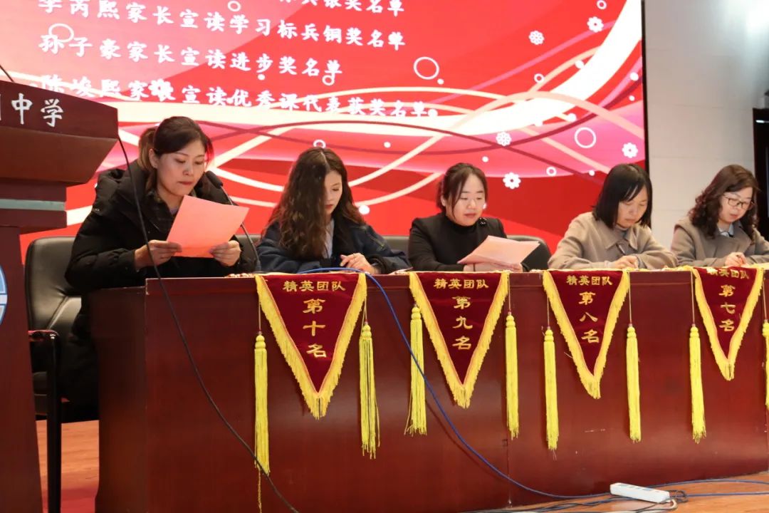 首先,学生家长依次宣读学习标兵金奖、银奖、铜奖,进步奖,优秀课代表获奖名单。然后,由校领导和家长们为获奖同学颁奖。