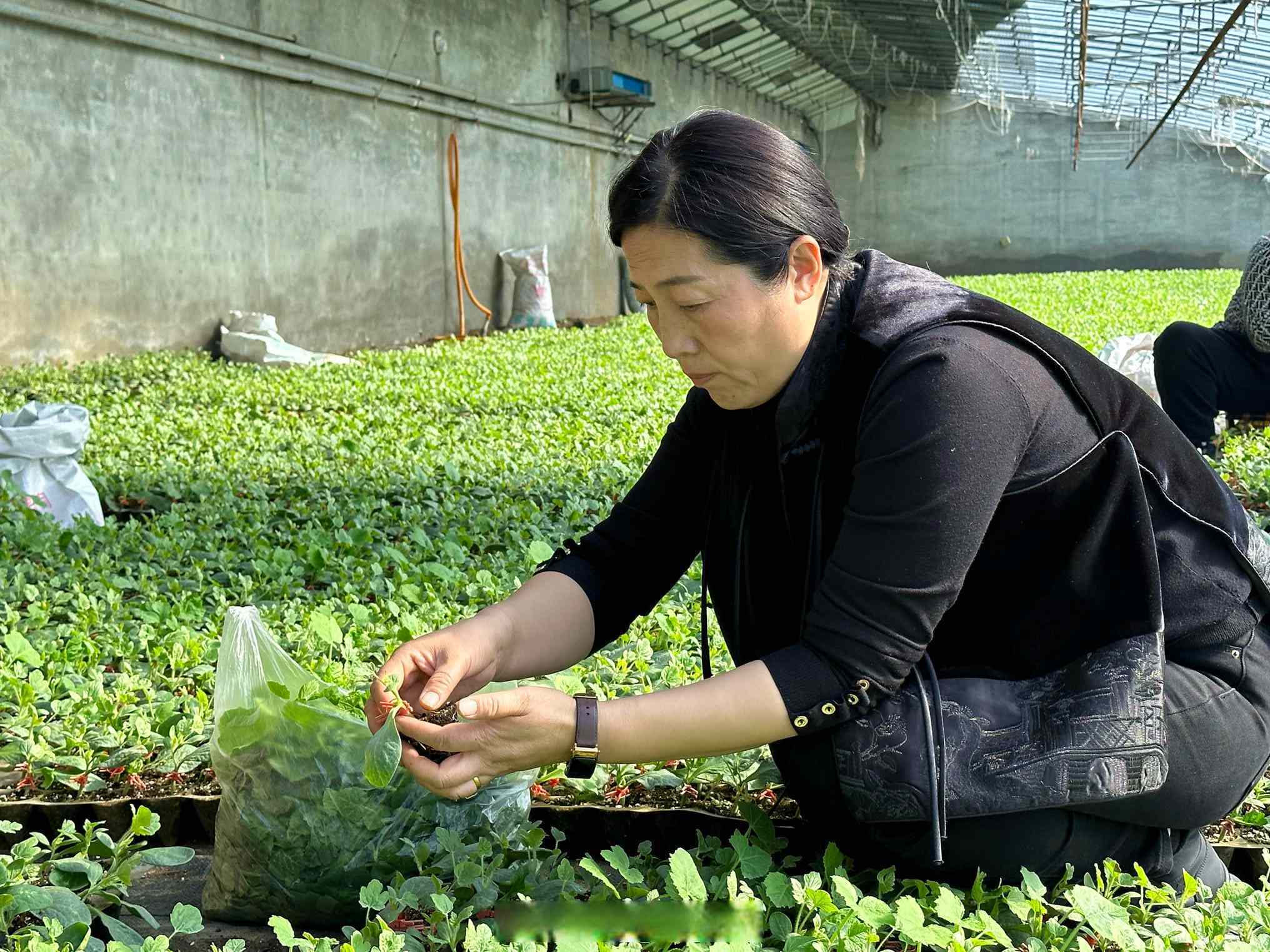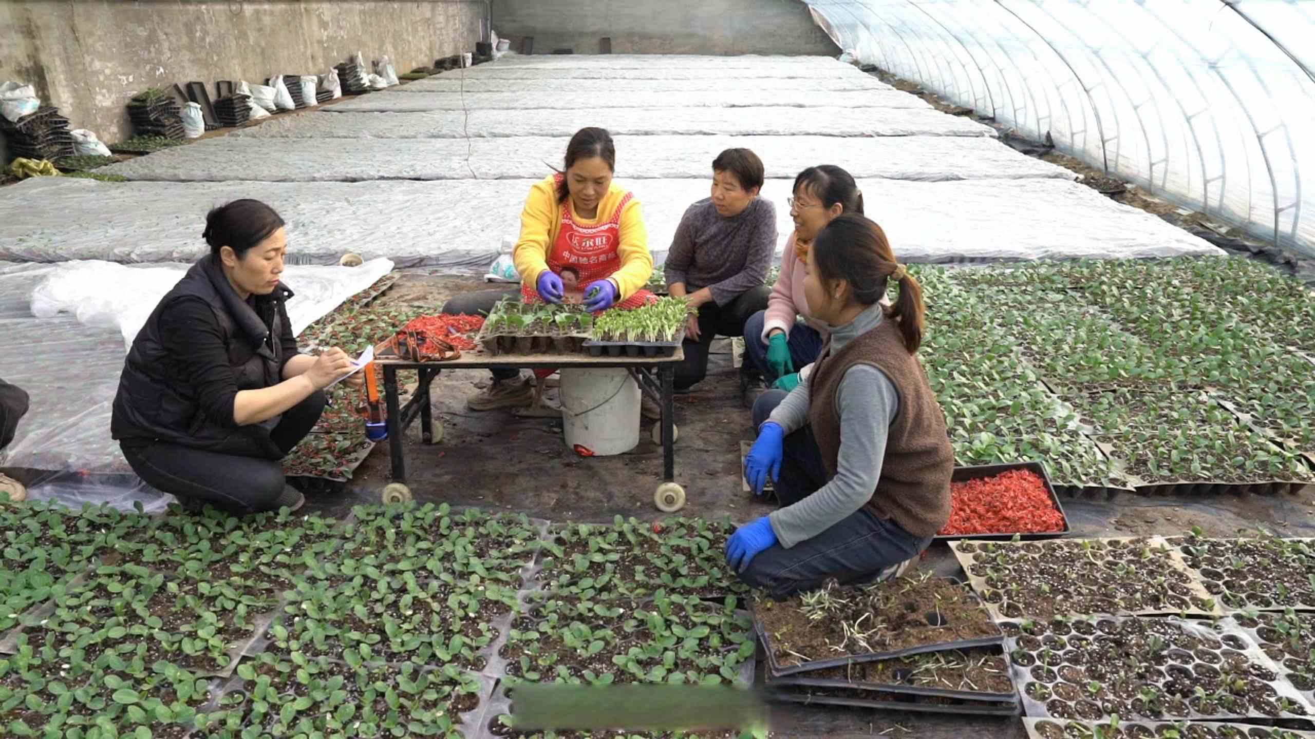 育瓜苗的温室大棚内暖意融融,刚嫁接的瓜苗长势喜人,郁郁葱葱。