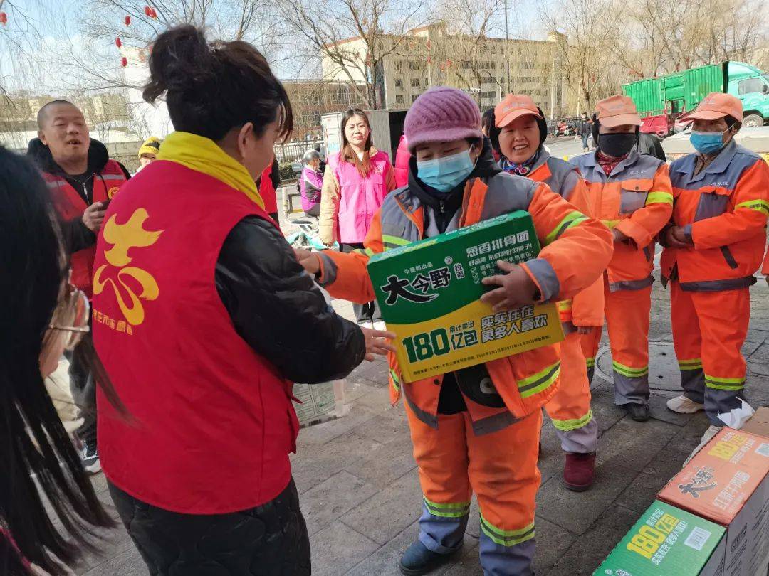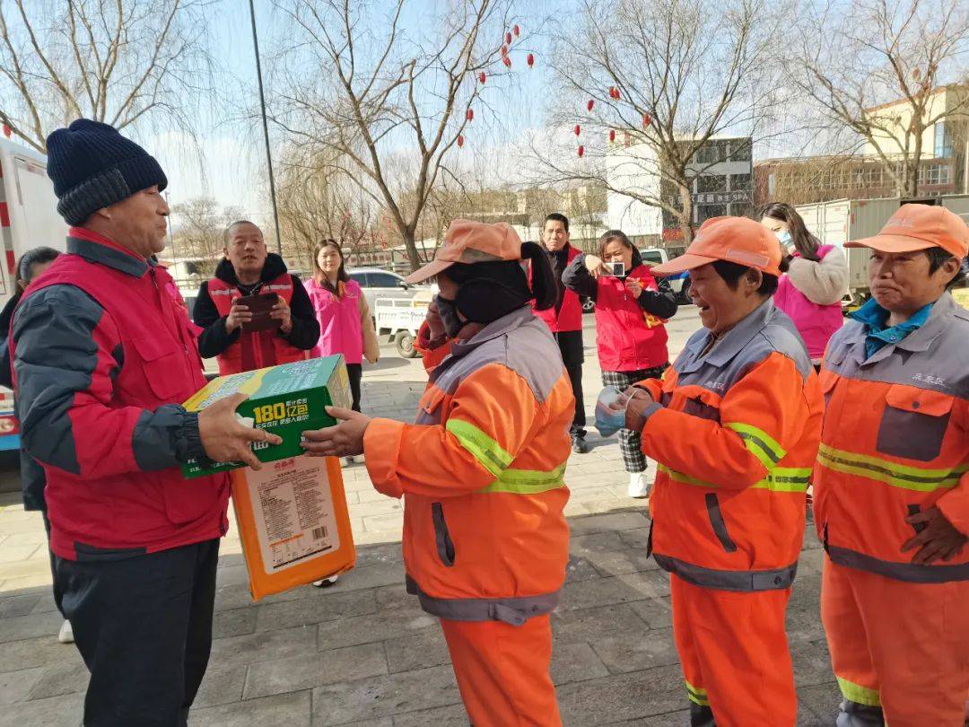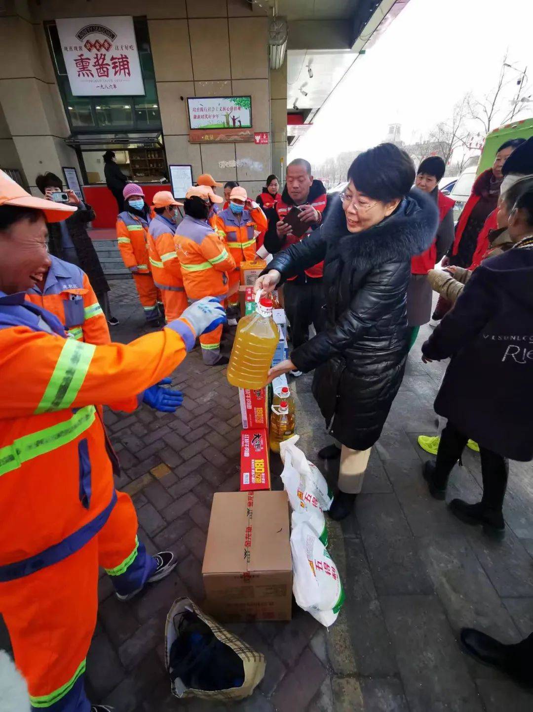 鹿泉分队负责人牛振河带领志愿者看望了一线的环卫工人,给她们送去了米、面、油和鲜羊奶表示慰问,并送去鲜花,祝他们工作顺利,身体健康。