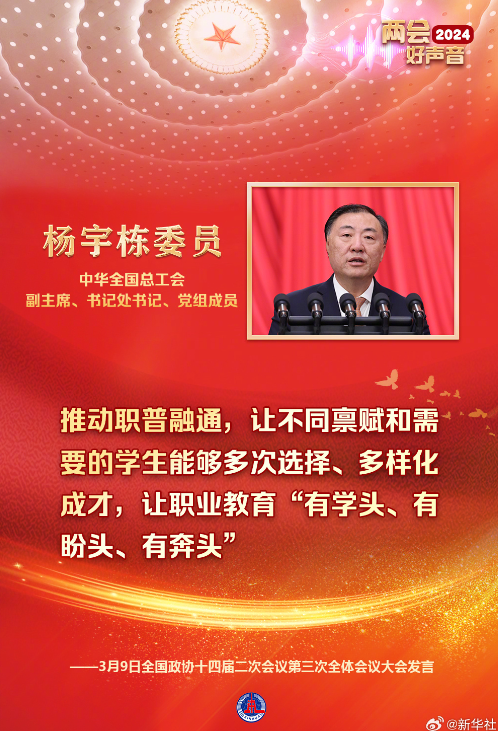 9日上午,全国政协十四届二次会议举行第三次全体会议。14位政协委员作大会发言。杨宇栋委员代表全国总工会发言。