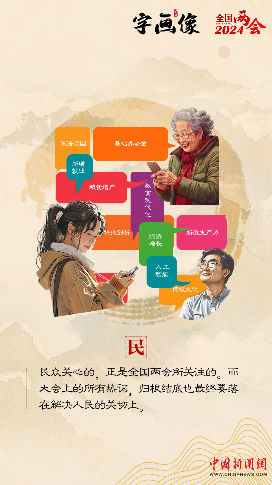 “两会热词”折射着民声民意,反映着人民群众对美好生活的向往和憧憬,承载着老百姓对各项工作的期待与希冀,我们尝试以字入画,通过九个汉字的漫画像,梳理全国两会报道中的热词,以期一窥民生脉搏,了解百姓关切。