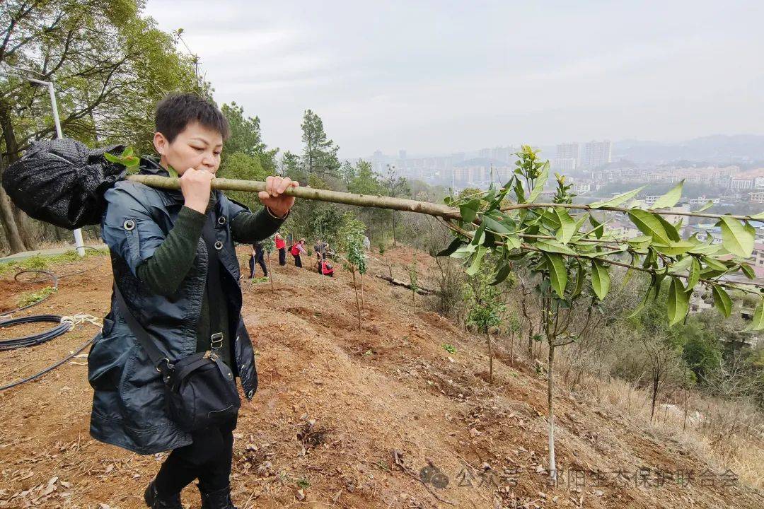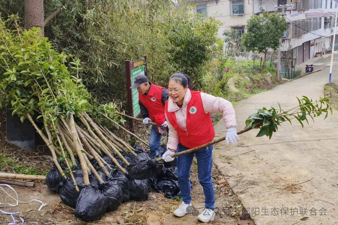 植树节前夕,3月10日上午,由邵阳市生态环境保护志愿者联合会全程打造的佘湖山生态景观公益林第二期栽种顺利完成。山上山下,志愿者们扛运树苗的、栽种树苗的、浇水施肥的各司其职。