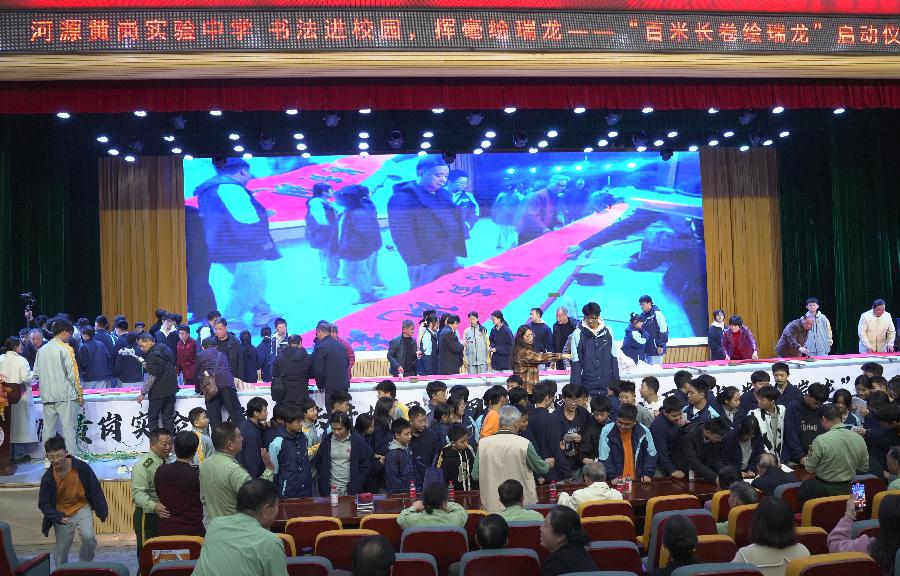 书法进校园 挥毫绘瑞龙“百米长卷绘瑞龙”活动启动仪式