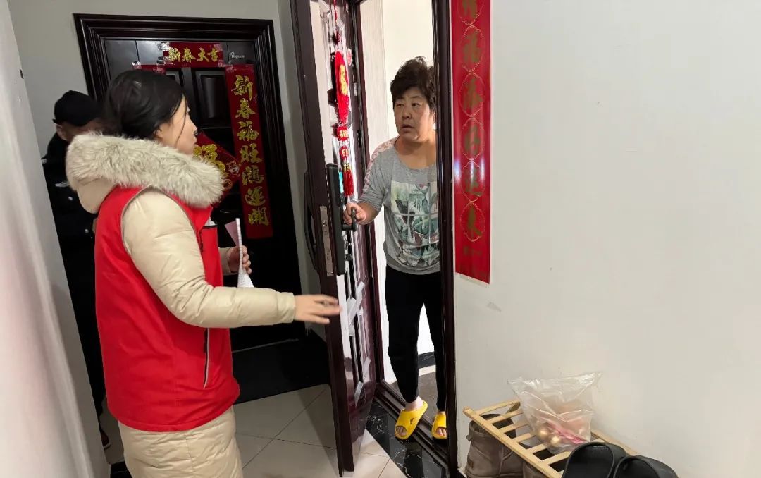 河北省张家口市怀来县沐春社区工作人员向居民宣传居家消防安全知识。李玲静 摄