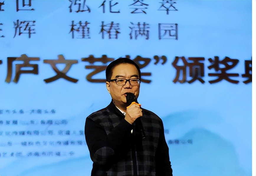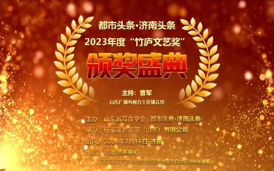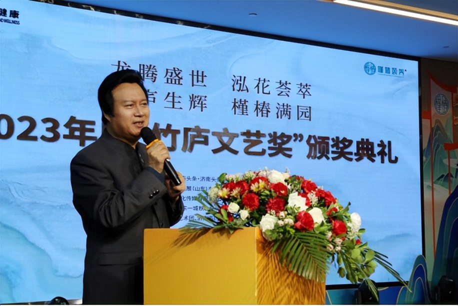 山东广播电视台主任播音员、山东省演讲学会秘书长曹军主持2023年度“竹庐文艺家”颁奖典礼。