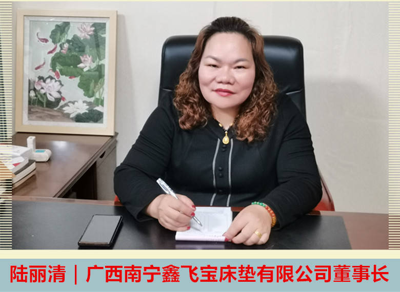 这里,广西南宁鑫飞宝床垫有限公司董事长、“鑫飞宝床垫”创始人陆丽清女士就给我们留下了的自强不息、勇于担当、创业创新的巾帼领跑者的身影。